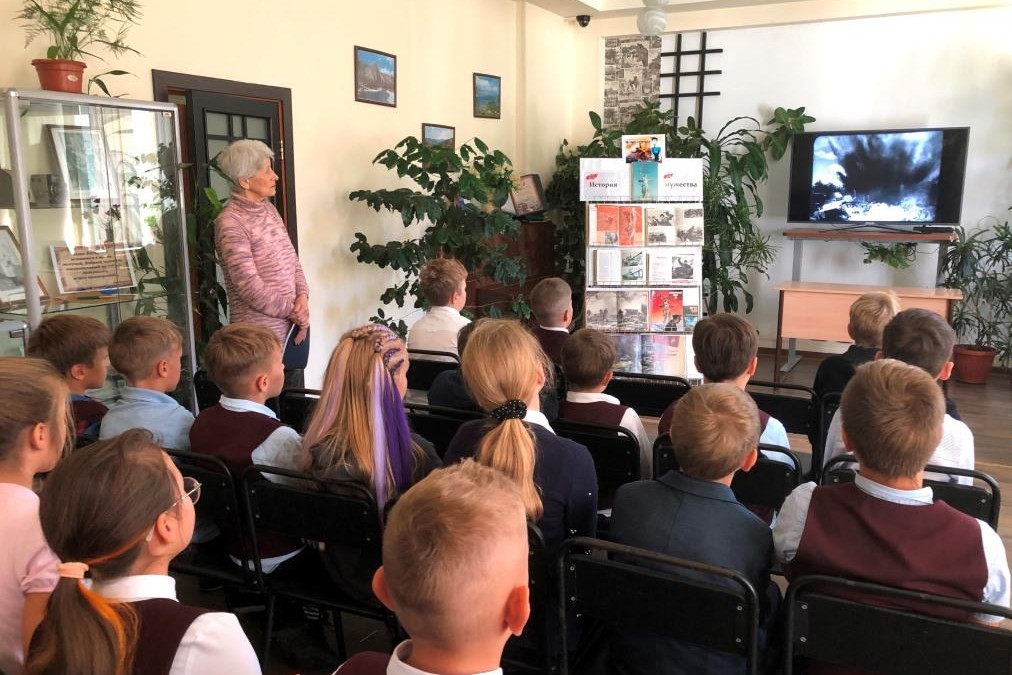 11 октября в библиотеке им. И.У. Басаргина был проведён урок памяти для учащихся 4 «Б» класса МБОУ «СОШ № 57». Урок начался с песни Александра Александрова «Священная война». Она настроила ребят на беседу-диалог о трагических событиях Великой Отечественной войны: Сталинградской битве, подвиге моряка-тихоокеанца Михаила Паникахи.