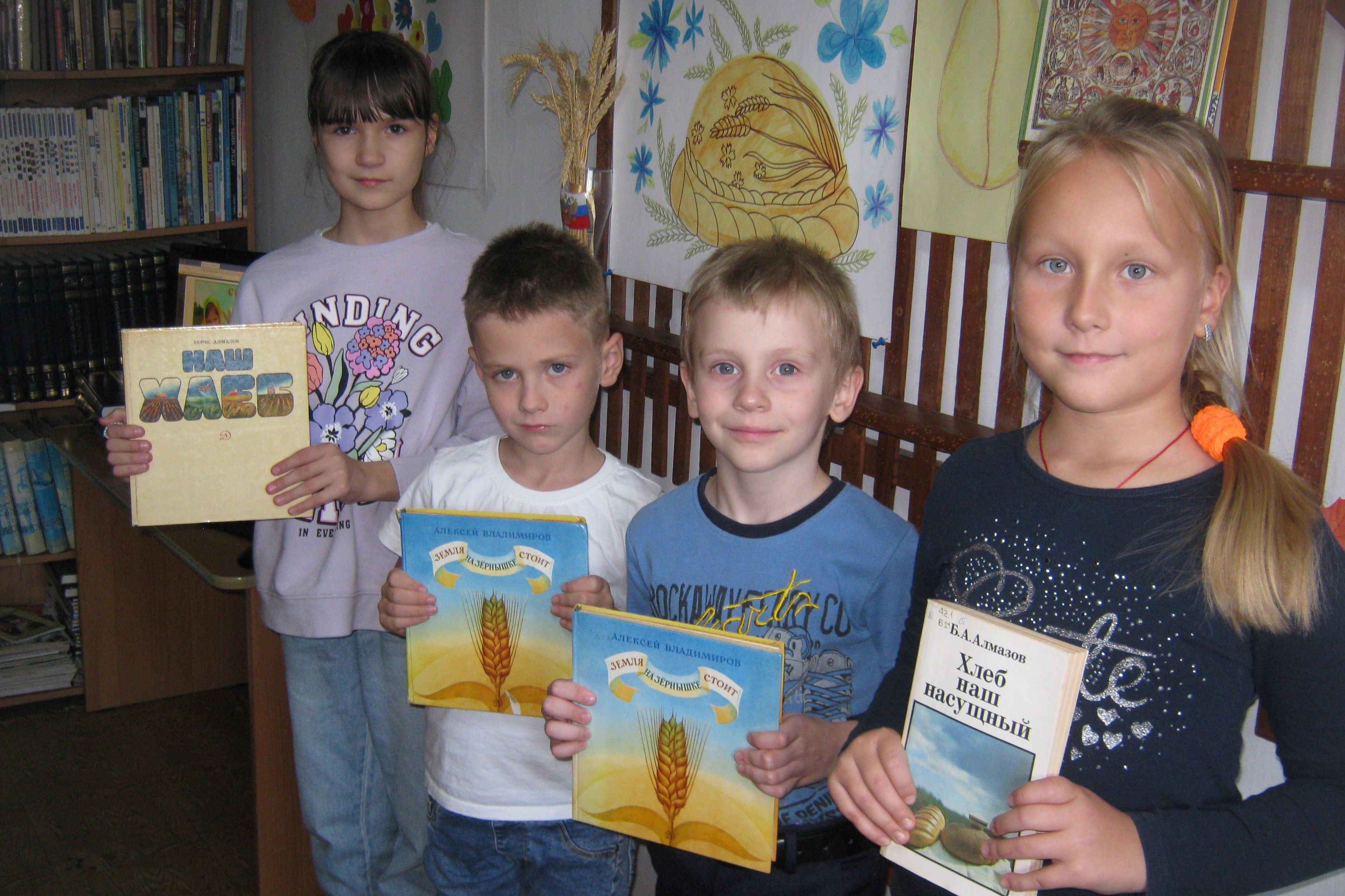 Детям рассказали о книгах. Например, Алексей Владимиров в книге «Земля на зернышке стоит» знакомит юных читателей с историей хлеба. О далеких предках и первых калачах, выпеченных в печи, рассказал А. Митяев в книге «Ржаной хлебушко – калачу дедушка». О нелегкой работе в поле и тружениках – хлеборобах написал книгу Б.А. Алмазов «Хлеб наш насущный», книга снабжена картинами древних художников, что стало еще одним доказательством древнего возделывания хлеба.