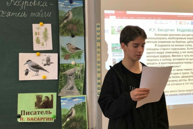 17 декабря состоялись занятия с учащимися 6 «В» и 6 «Г» классов МБОУ «СОШ № 64», на которых они познакомились с рассказом И.У. Басаргина «Кедровка – сеятель тайги». Занятие прошло в рамках проекта «Литературное наследие И.У. Басаргина».