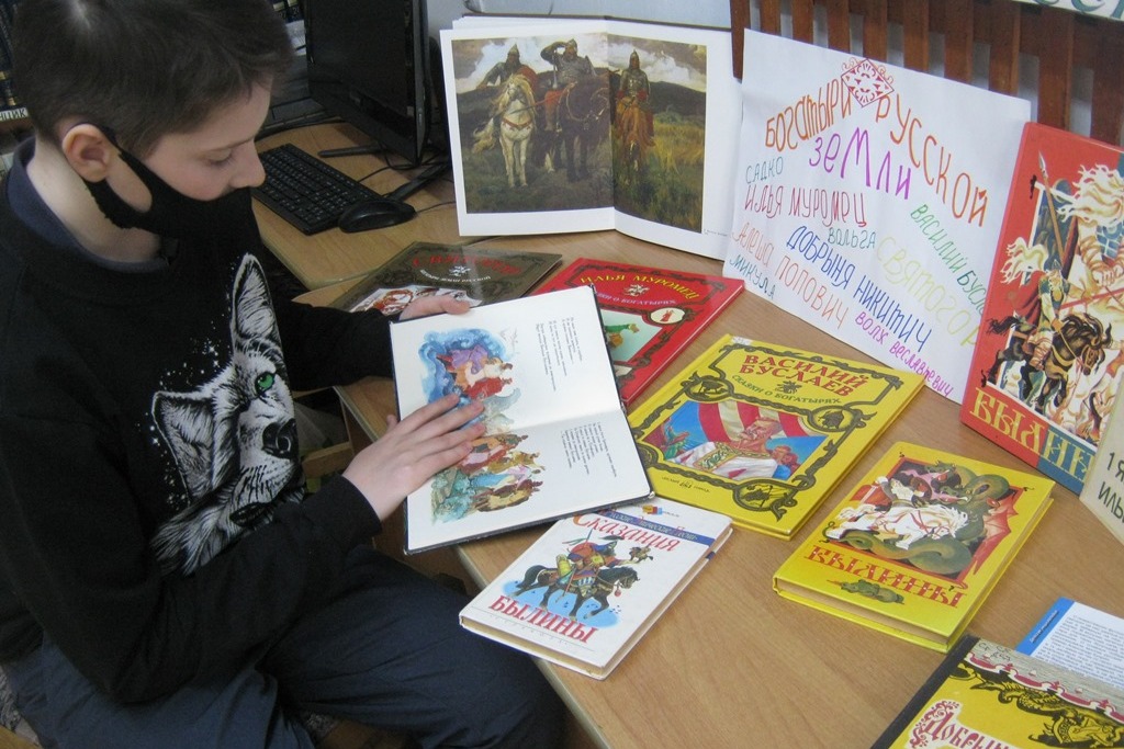 Библиотека № 22 организовала для юных читателей выставку-путешествие в глубь веков «Илья Муромец – богатырь Земли Русской». Дети познакомились с миром русских былин, главными героями в которых выступают славные богатыри, которые храбро и достойно оберегали Русь, вместе побеждая всех врагов. Былины всегда вдохновляли наших кинематографистов на создание художественных и мультипликационных фильмов. Ребята назвали мультфильмы об Илье Муромце: «Обретение силы Ильёй Муромцем», «Илья Муромец и Святогор», «Илья Муромец и Соловей Разбойник» и др. Русские художники В. Васнецов, В. Верещагин, Н. Рерих, К. Васильев посвящали свои картины подвигам Ильи Муромца. В наши дни Илья Муромец считается покровителем Российских ракетных войск стратегического назначения и Пограничных войск России. В заключении ребята разобрали прекрасные книги для домашнего чтения.