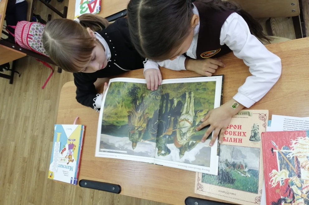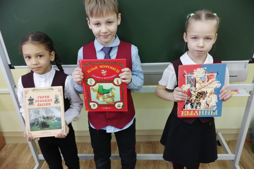 15 января библиотека им. И.У. Басаргина по программе Школы талантливого читателя «Книжные старты» организовала для учащихся 1 «А» класса школы № 57 виртуальное путешествие в историю. Дети узнали, что такое былина, кто такие богатыри (откуда родом богатырь Илья Муромец), как называлась одежда богатырей, какими доспехами пользовались защитники Родины, а также познакомились с автором картины «Три богатыря». На книжной выставке были представлены книги: «Былины», «Васнецов», «Герои русских былин», «Илья Муромец» и другие произведения. Для громкого чтения выбрали книгу «Былины».