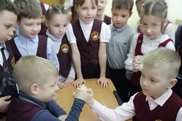 В завершение встречи ребята превратились в былинных богатырей, добрых молодцев и показали свою силушку богатырскую в состязании бодибилдеров под песню «Богатырская наша сила».