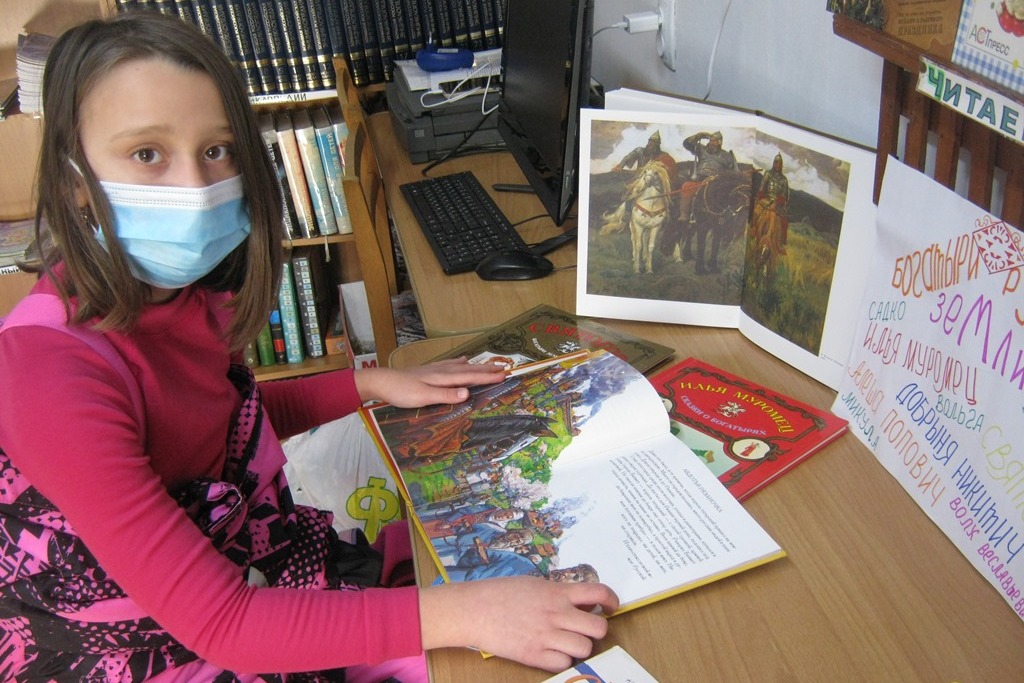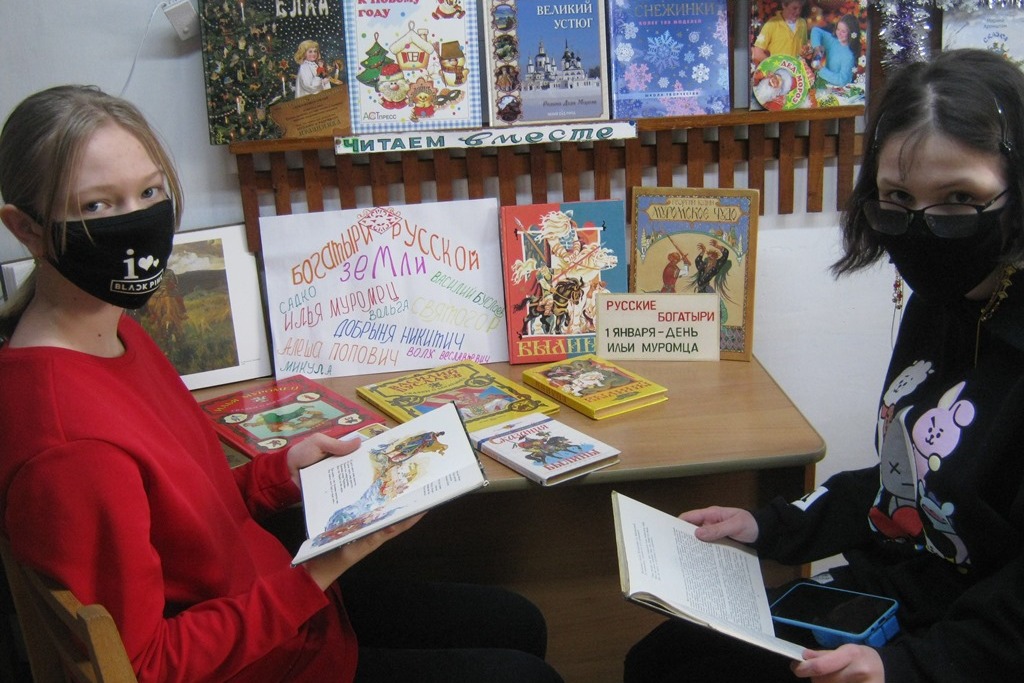 Библиотека № 22 организовала для юных читателей выставку-путешествие в глубь веков «Илья Муромец – богатырь Земли Русской». Дети познакомились с миром русских былин, главными героями в которых выступают славные богатыри, которые храбро и достойно оберегали Русь, вместе побеждая всех врагов. Былины всегда вдохновляли наших кинематографистов на создание художественных и мультипликационных фильмов. Ребята назвали мультфильмы об Илье Муромце: «Обретение силы Ильёй Муромцем», «Илья Муромец и Святогор», «Илья Муромец и Соловей Разбойник» и др. Русские художники В. Васнецов, В. Верещагин, Н. Рерих, К. Васильев посвящали свои картины подвигам Ильи Муромца. В наши дни Илья Муромец считается покровителем Российских ракетных войск стратегического назначения и Пограничных войск России. В заключении ребята разобрали прекрасные книги для домашнего чтения.
