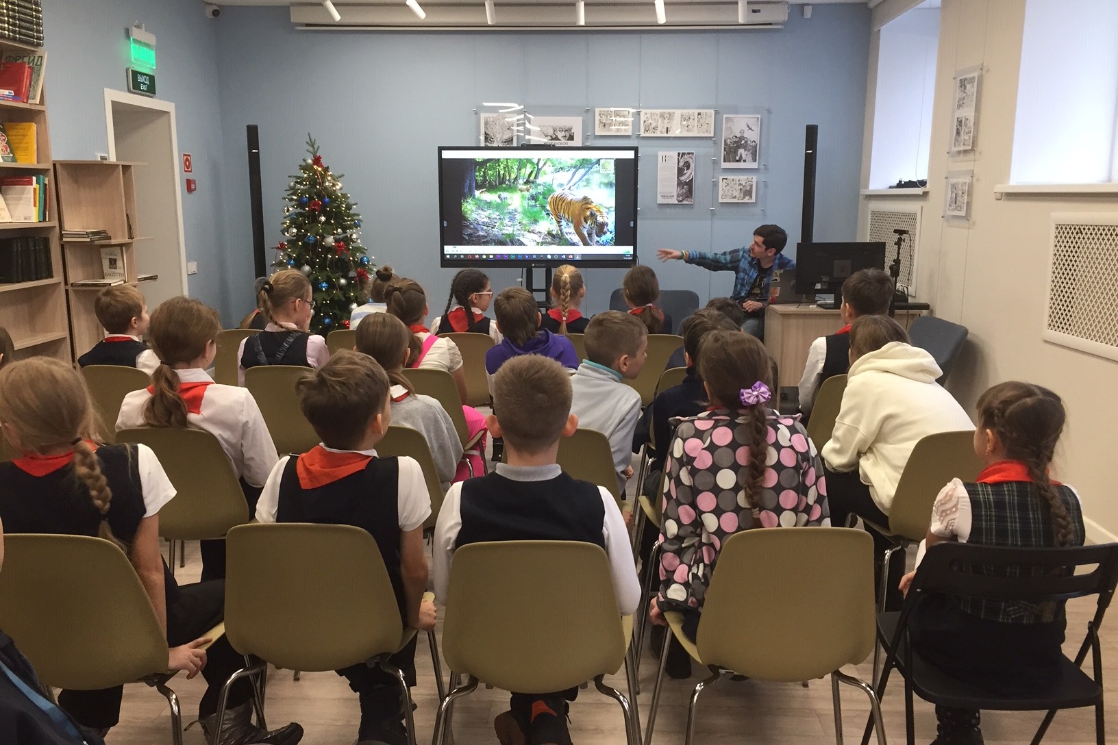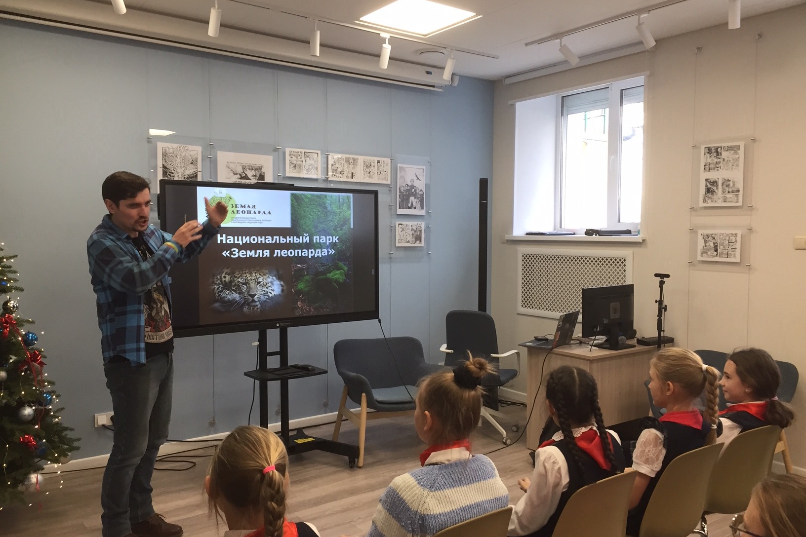 17 января в Центральной библиотеке им. А. Чехова прошла встреча четвероклассников СОШ № 52 с пресс-секретарем национального парка «Земля леопарда» Данилом Гончаровым, приуроченная к Дню заповедников. Заповедные уроки «Земля леопарда» проводит регулярно в рамках работы по экологическому просвещению населения, и в ЦБ представители национального парка уже встречались с читателями.