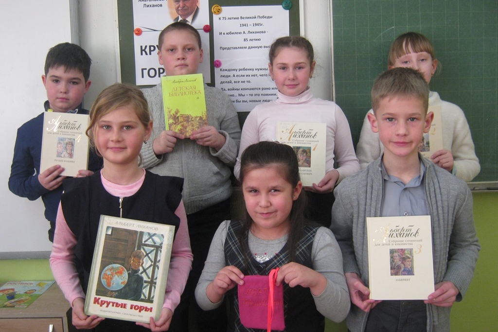 Альберт Лиханов — писатель, психолог детских душ, общественный деятель, академик. Создатель первых семейных детских домов. Обладатель 35 наград, не только нашей страны, но и зарубежных. Его любят, его помнят, его книги переиздают на многие языки мира. Его читают и сегодняшнее поколение детей, потому что — правда, потому что верят и переживают маленькие сердца за Колю, его отца, товарищей, друга Вовку, за нашу Родину. Мероприятие прошло, но дети еще долго листали книги, рассматривали рисунки, держали в руках кисет, спорили о прыжках с горы и замолкали неожиданно, переживали.