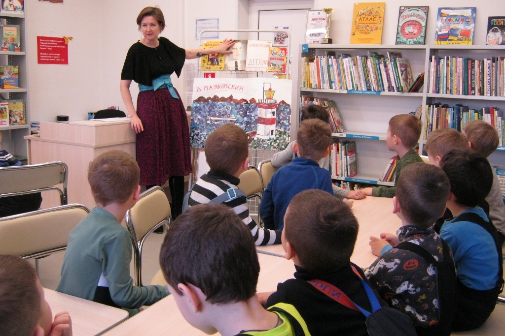 13 марта в библиотеке №8 малыши из детского сада №80 знакомились с книгой-юбиляром. Дети послушали стихотворение Владимира Маяковского, помогая определить, где «хорошо», а где «плохо», посмотрели чудесные иллюстрации Ювеналия Коровина и объяснили, какую бы они нарисовали птицу там, где «этот, хоть и сам с вершок, спорит с грозной птицей».
