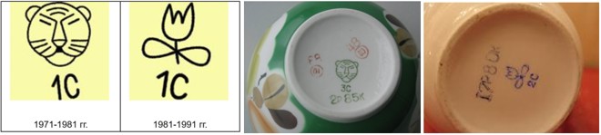 С 1971 по 1982 гг. Владивостокский фарфоровый завод имел клеймо в виде схематичного изображения тигриной морды.