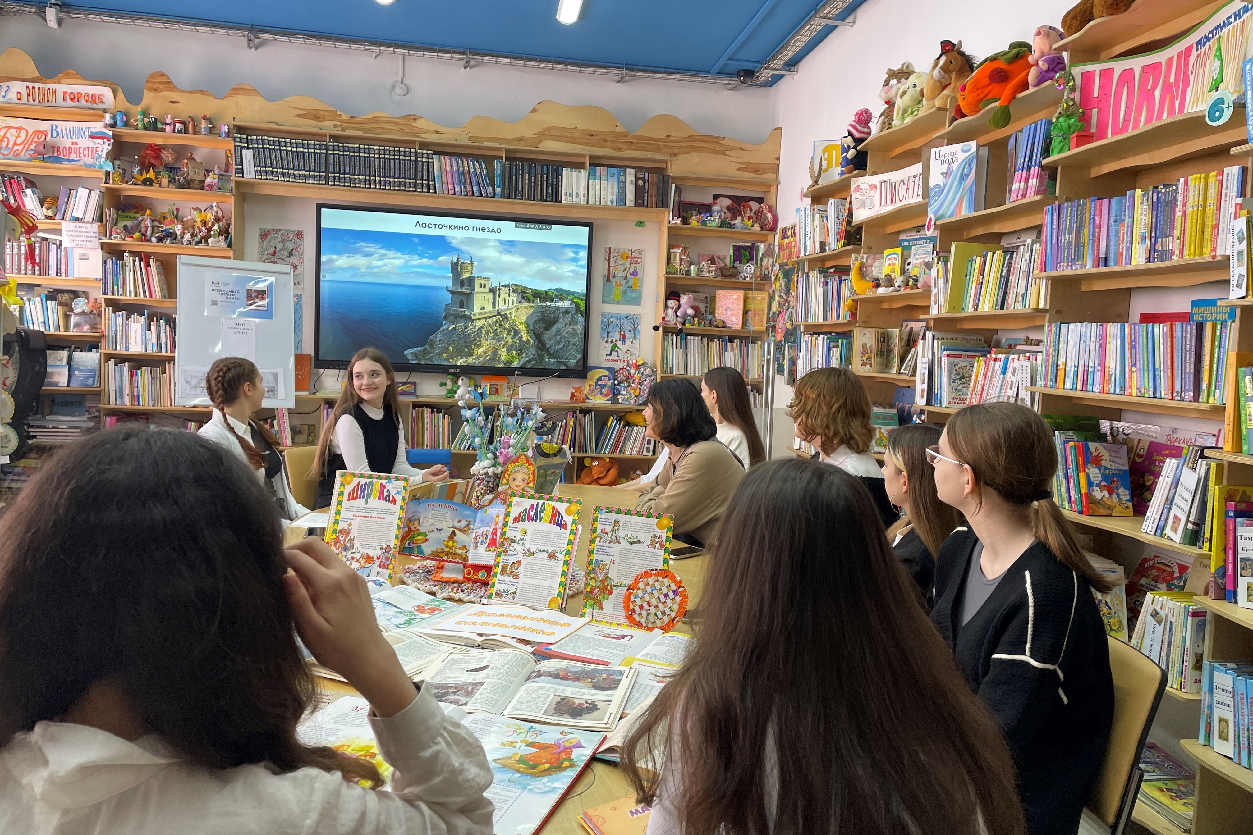Познавательный час «Крым – это Россия» детская библиотека № 7 организовала 14 марта для учащихся 7 «а» класса школы № 74. 16 марта 2014 года состоялся референдум о статусе Крыма. За воссоединение с Россией на референдуме в Крыму проголосовали 96,77% жителей. Такое воссоединение состоялось 18 марта. Как узнали учащиеся в ходе познавательного часа – это важное историческое событие, потому что Крым вернулся домой в Россию. Шел разговор о богатейшей истории Крыма, наиболее известных его городах. Ученики узнали не только об исторических, но и о природных достопримечательностях края, задавали вопросы, возникающие у них в ходе беседы, о местных памятниках и различных любопытных местах. Также поговорили о том, что современный Крым – край курортников и путешественников и как выяснилось, некоторые из присутствующих были в Крыму. Потом познакомились с художественной книгой Юза Алешковского «Кыш и я в Крыму», где проходят такие интересные события. А еще увидели Медведь-гору, второе ее название Аю-Даг, с интересом послушали веселую и добрую детскую песенку «Абсолют» Владимира Орлова, ведь именно эту песенку хором поют дети в Международном детском центре «Артек».
