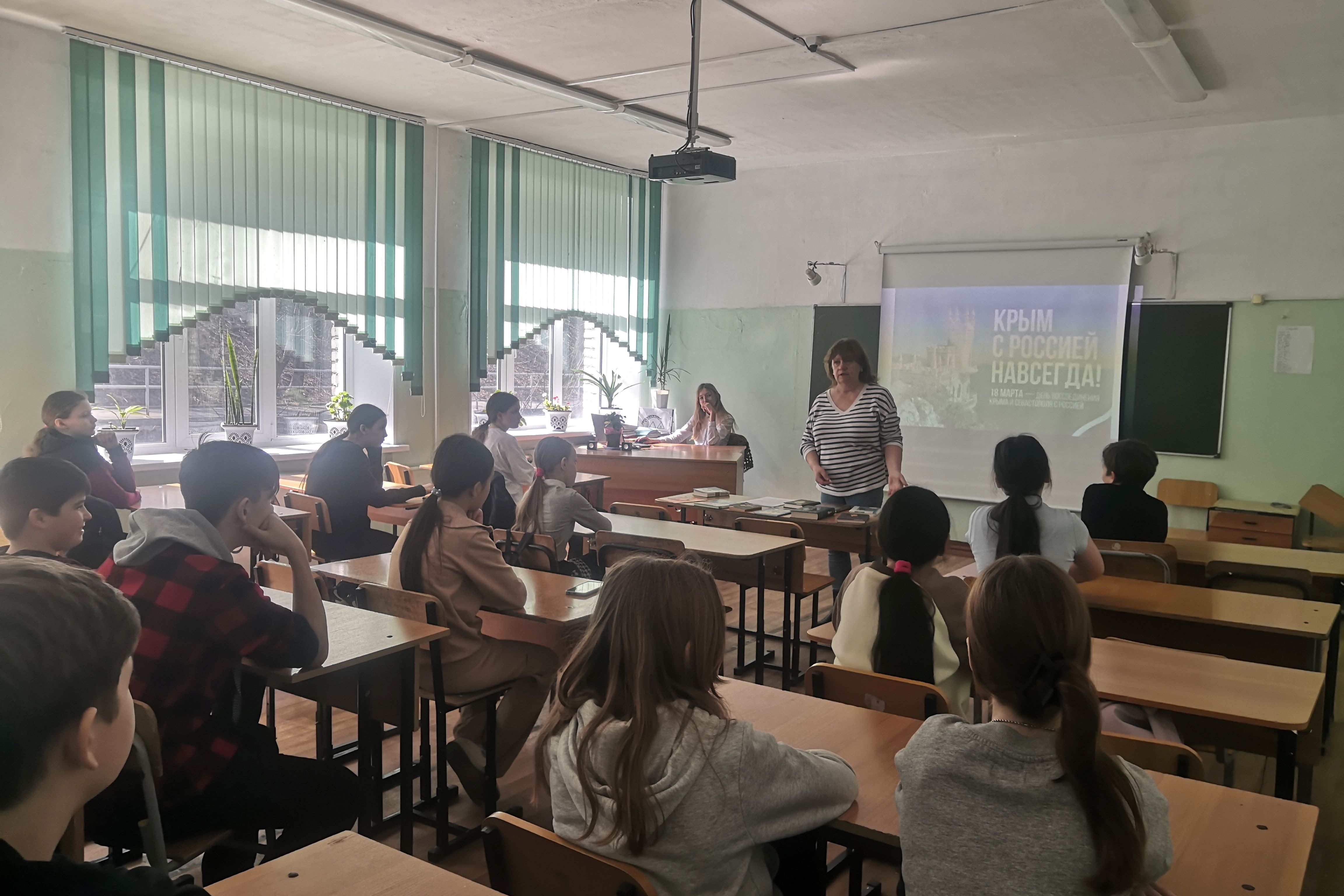 Исторический урок для старшеклассников средней школы № 70, организован библиотекой № 2. Школьникам кратко рассказали о том, какую роль играл полуостров Крым в истории России и какие события предшествовали воссоединению Крыма с Россией. Ребята посмотрели документальный фильм, посвященный празднованию этого события. Особое внимание школьников обратили на грандиозную стройку моста, которая началась после воссоединения Крыма с Россией. Мост соединил Керченский и Таманский полуостров и является самым протяженным мостом в России. Автомобильная и железная дороги, проходящие по мосту, имеют огромное значение для полуострова и фактором для дальнейшего развития региона. А еще, мост через Керченский пролив является символом воссоединения Крыма с Россией, возвращение России статуса великой державы.