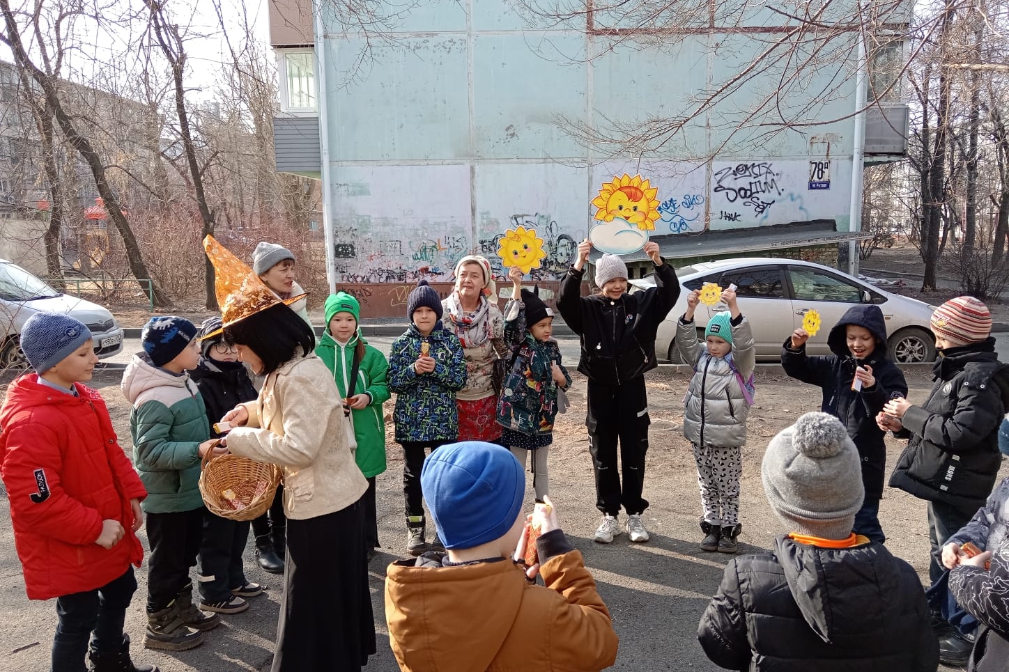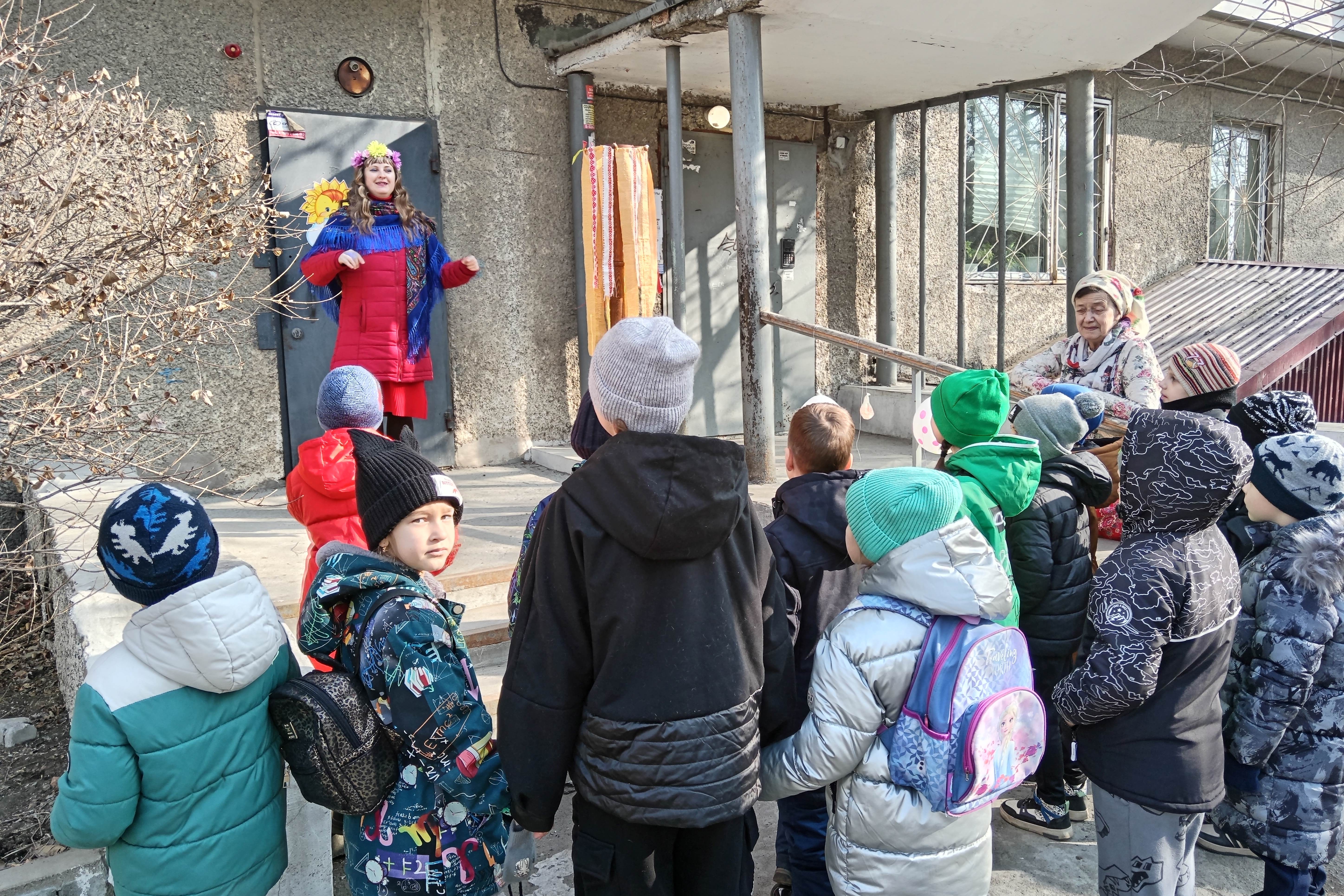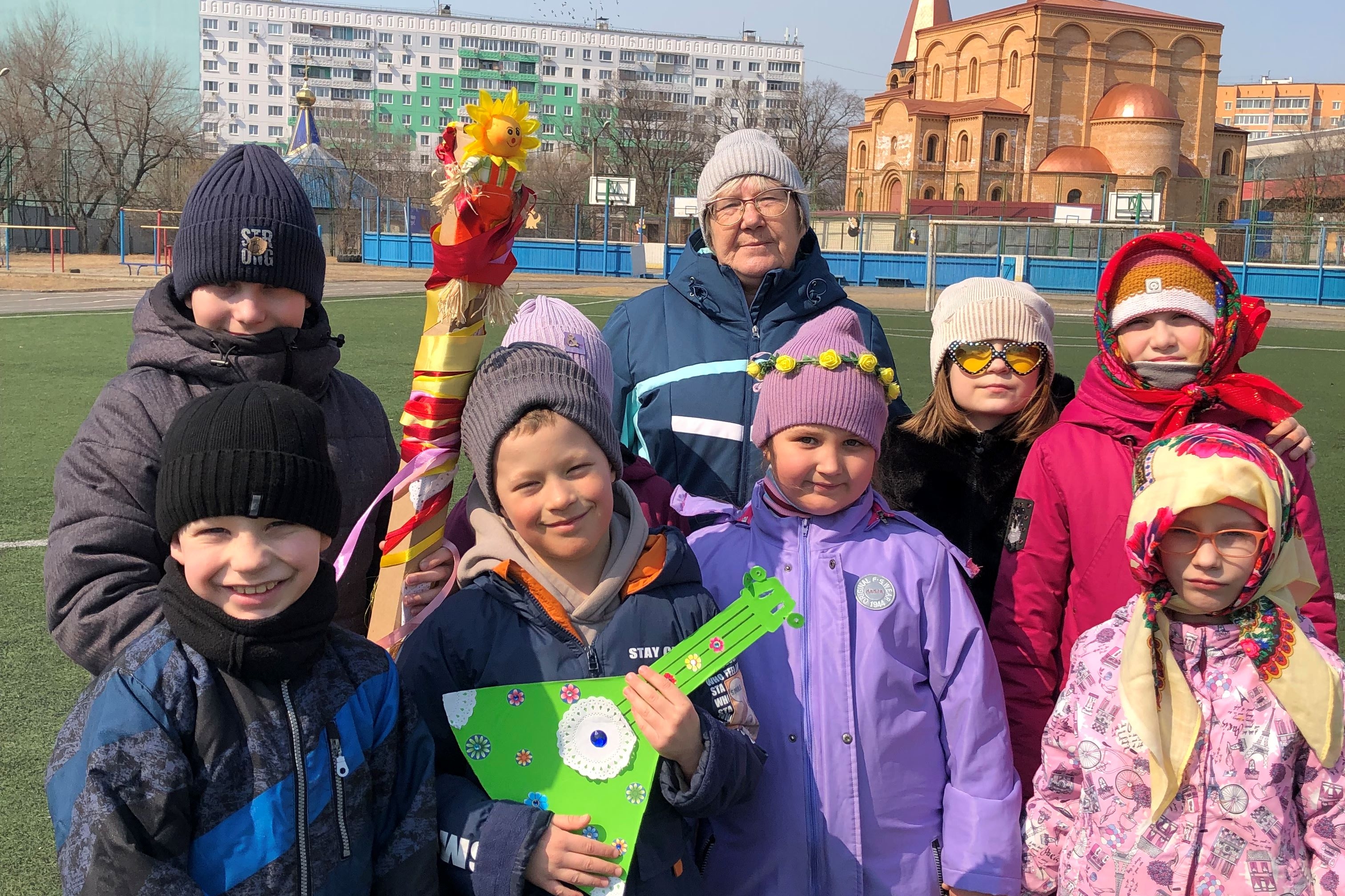 Праздник проводов зимы для школьников 1 «В» класса СОШ № 61 организовала 16 марта библиотека № 13 на придомовой территории. Позже к мероприятию присоединились дети из ближайших домов. Мероприятие получилось ярким, зрелищным и веселым. Сначала появилась Зимушка-Зима, но совсем не злая и холодная, а приветливая, озорная, которая очень любит зимние игры, детские забавы и сверкающий пушистый снег. Пообщались дети с Зимушкой, вспомнили, как озорничала она да за щечки прищипывала. Попрощалась Зима с ребятами до следующего года, пригласила Весну-красну с цветами, теплом и пением птиц. И вот уже Весна радует детишек играми, танцами, веселым хороводом. Пели-плясали школьники, вспоминали Зиму добрым словом. Обычаи масленичные старинные описала им Весна, историю праздника рассказала, что корнями уходит в прошлое Руси.