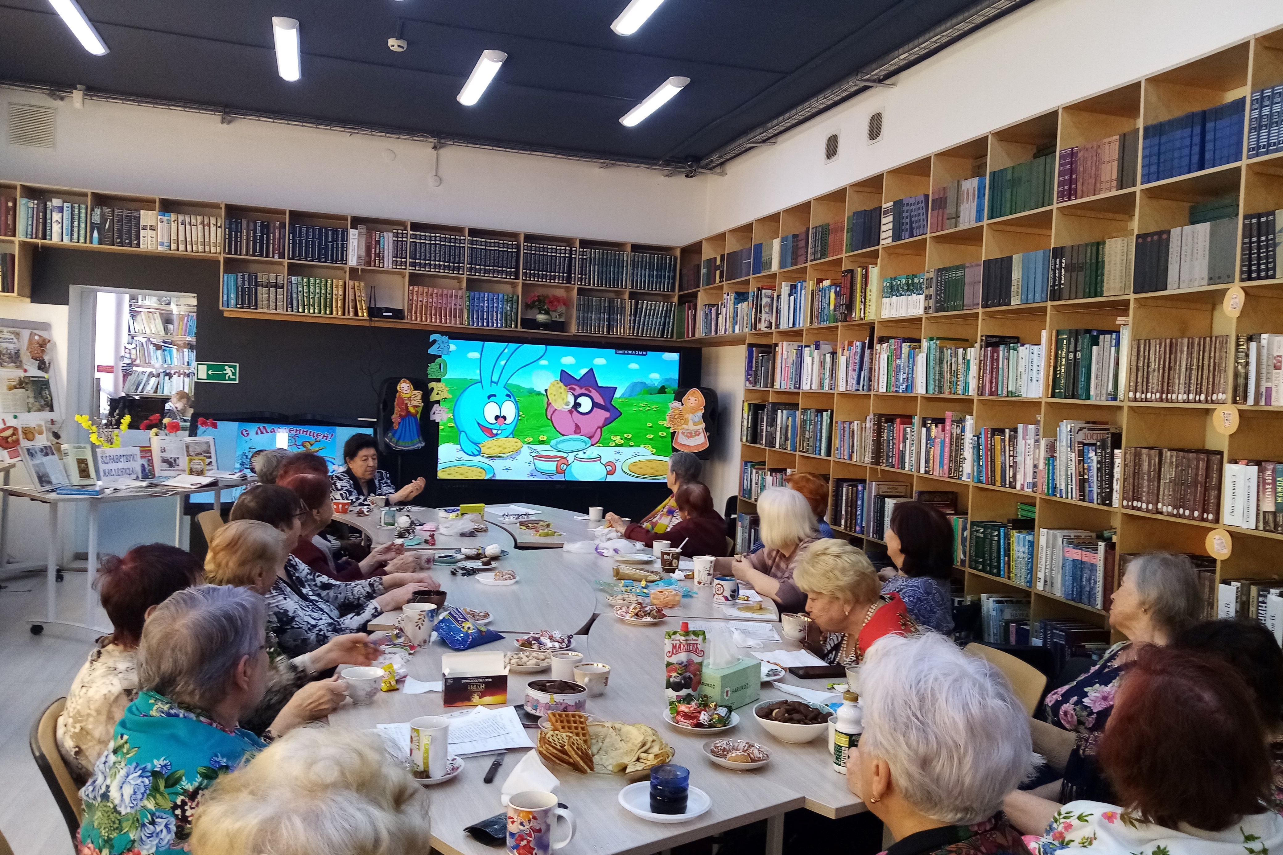 Проводы зимы для читателей старшего поколения прошли в библиотеке № 12. К этому празднику была оформлена яркая, красочная и содержательная выставка-совет «Здравствуй, Масленица». Проводя обзор выставки, библиотекарь познакомила собравшихся с историей праздника, его традициями. С удовольствием присутствующие посмотрели презентацию «Масленица на Руси», отгадывали загадки, вспомнили пословицы и поговорки о блинах, читали стихи, пели песни. Оживлённый рассказ ведущего сопровождался песнями ансамбля «Улыбка» о Масленице, блинах, чае.