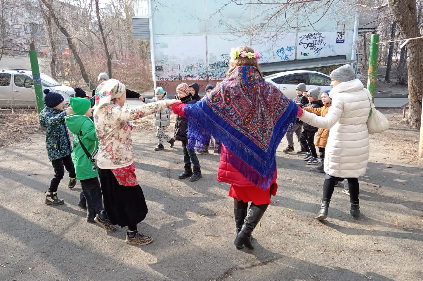 Праздник проводов зимы для школьников 1 «В» класса СОШ № 61 организовала 16 марта библиотека № 13 на придомовой территории. Позже к мероприятию присоединились дети из ближайших домов. Мероприятие получилось ярким, зрелищным и веселым. Сначала появилась Зимушка-Зима, но совсем не злая и холодная, а приветливая, озорная, которая очень любит зимние игры, детские забавы и сверкающий пушистый снег. Пообщались дети с Зимушкой, вспомнили, как озорничала она да за щечки прищипывала. Попрощалась Зима с ребятами до следующего года, пригласила Весну-красну с цветами, теплом и пением птиц. И вот уже Весна радует детишек играми, танцами, веселым хороводом. Пели-плясали школьники, вспоминали Зиму добрым словом. Обычаи масленичные старинные описала им Весна, историю праздника рассказала, что корнями уходит в прошлое Руси.