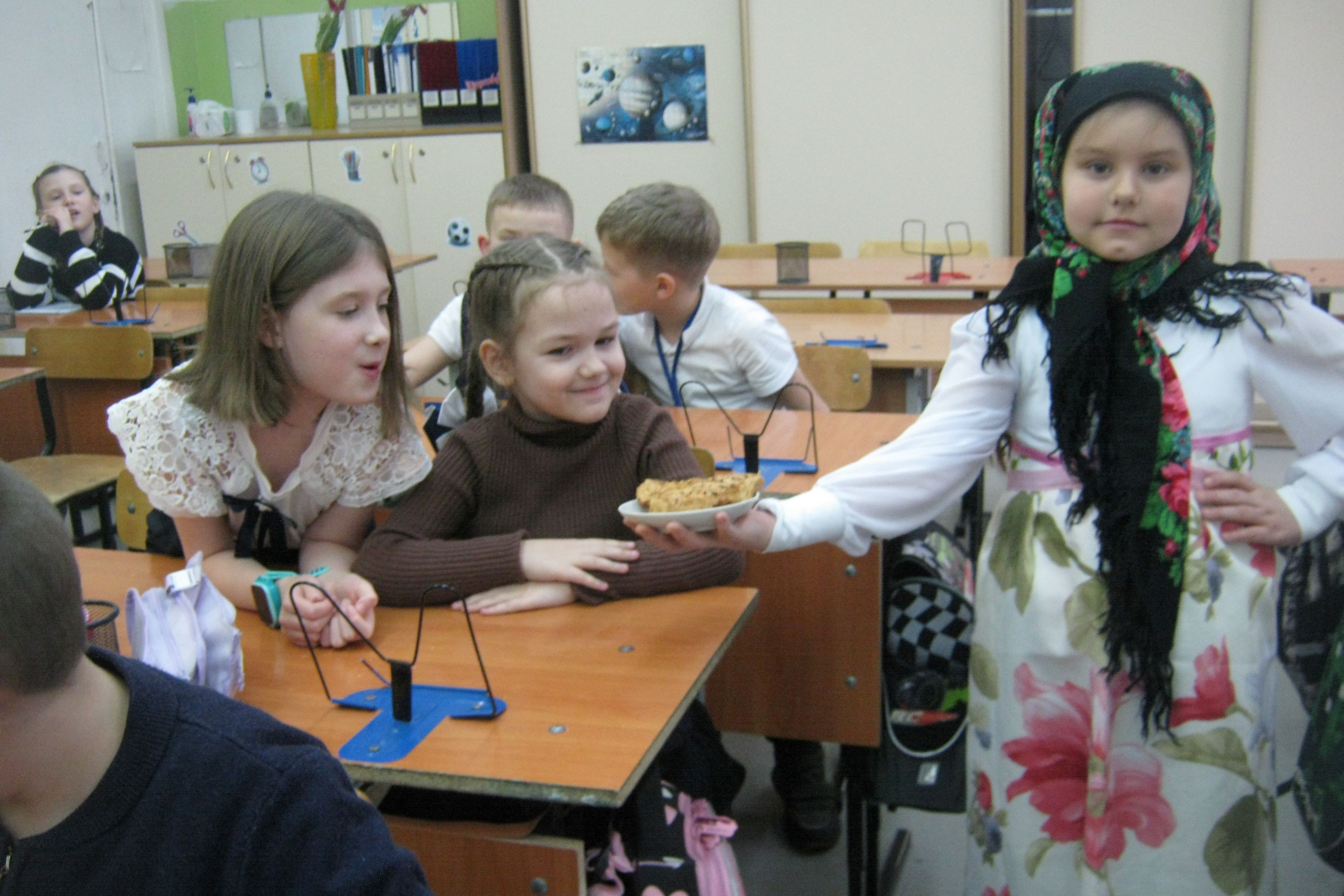 Фольклорный праздник детям понравился. Кича Маша покорила одноклассников своим нарядом и хоть этот наряд шился совсем недавно, но именно его обсуждали дети, сравнивая с современной одеждой. Маша пронесла по классу булочку (правда не в виде птицы), но такую сдобную и ароматную, что руки ребят сами тянулись, всем хотелось отведать вкусняшку.