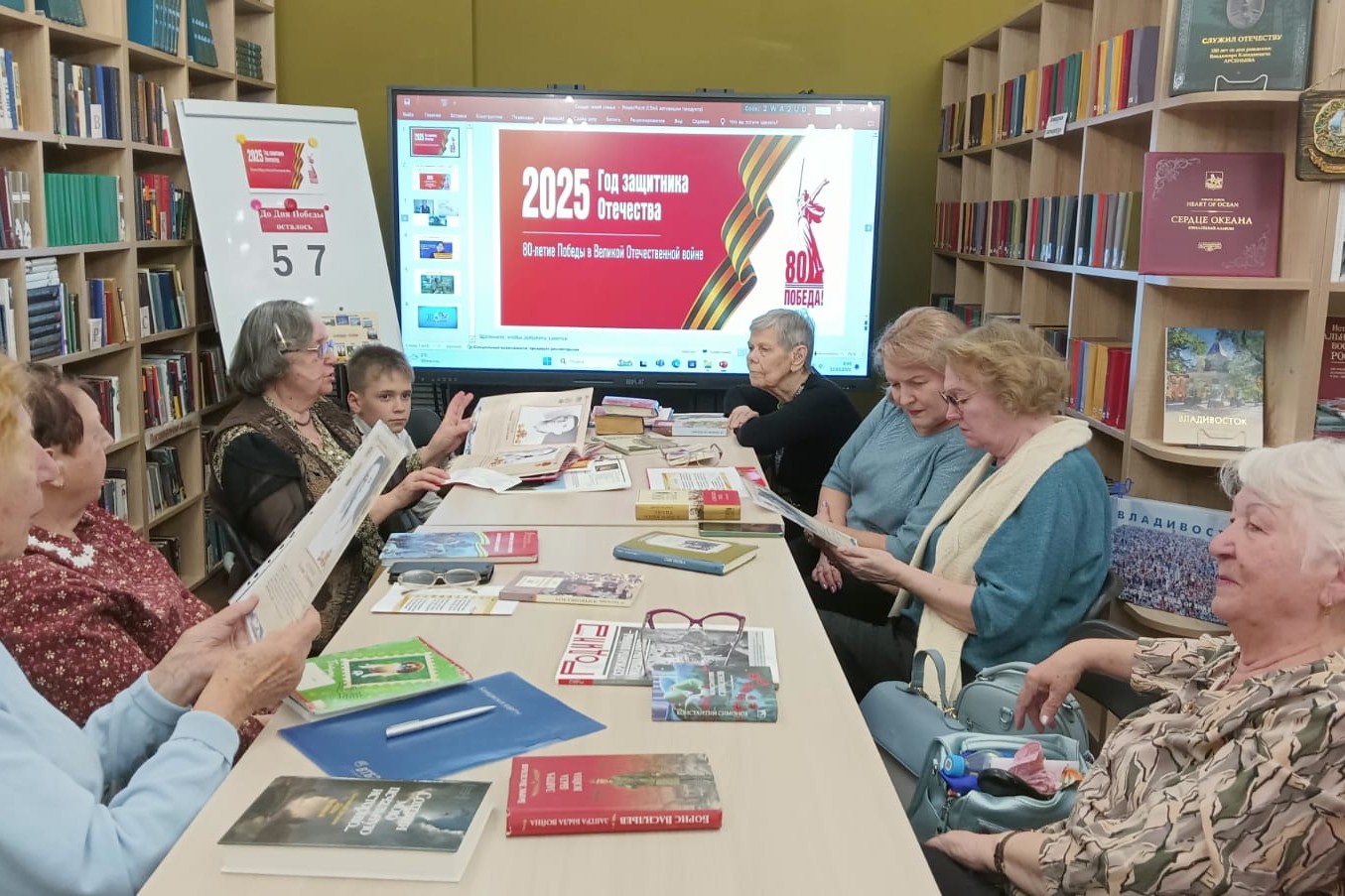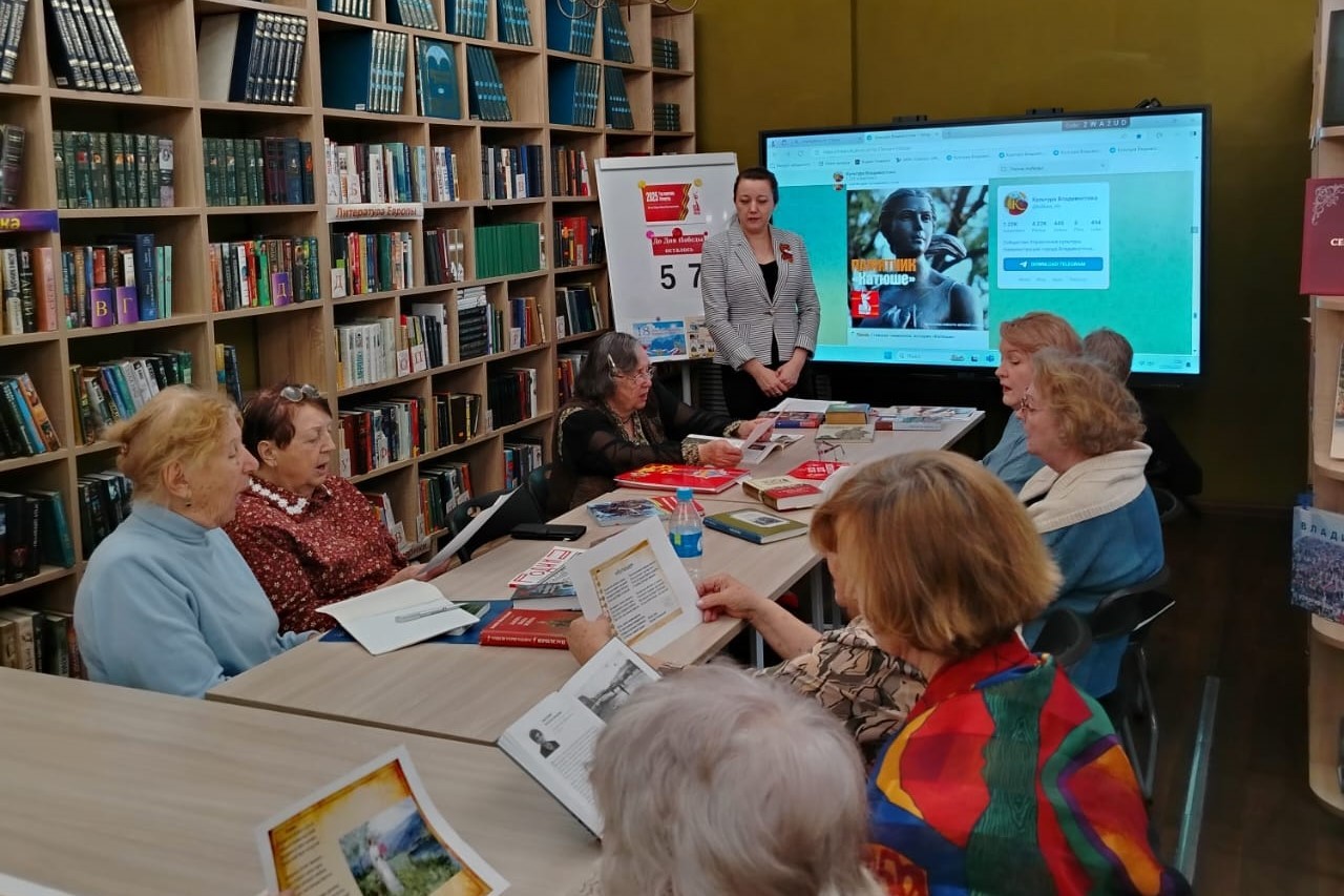 В библиотеке есть несколько изданий Блокадной книги, составителями которой является Катченкова Надежда Семеновна, библиотекарь Боброва Е.Т. Книга включает в себя воспоминания тех, кто защищал Ленинград, работал в городе и тех, кто пережил эту страшную трагедию и волею судьбы впоследствии стал жителем Владивостока. Каждый участник встречи рассказал о своих родителях, показал медали и памятные фото.