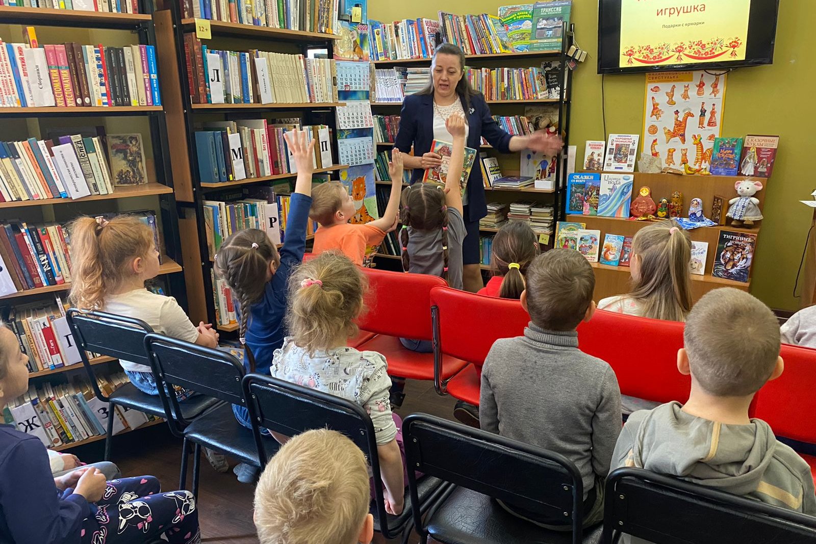 К году народного искусства и нематериального наследия России, библиотека №4 приготовила для своих читателей цикл познавательных мероприятий «По Золотому кольцу России». В конце апреля воспитанники детского сада №37 пришли издалека в гости в библиотеку для знакомства с настоящим волшебством, старинным народным промыслом Тульской области – нарядной Филимоновской игрушкой.