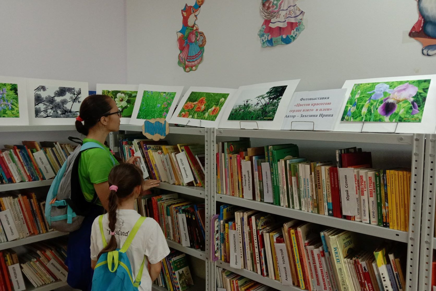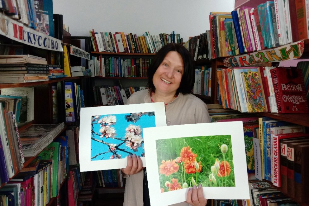 Ярким, эмоциональным дополнением к книгам являются работы фотохудожницы из Артема, Ирины Захезиной. Люпины, вьюнки, васильки, магнолия, вишня, анютины глазки, яблоня, черемуха, пионы, глициния, репейник радуют посетителей библиотеки яркими соцветиями.