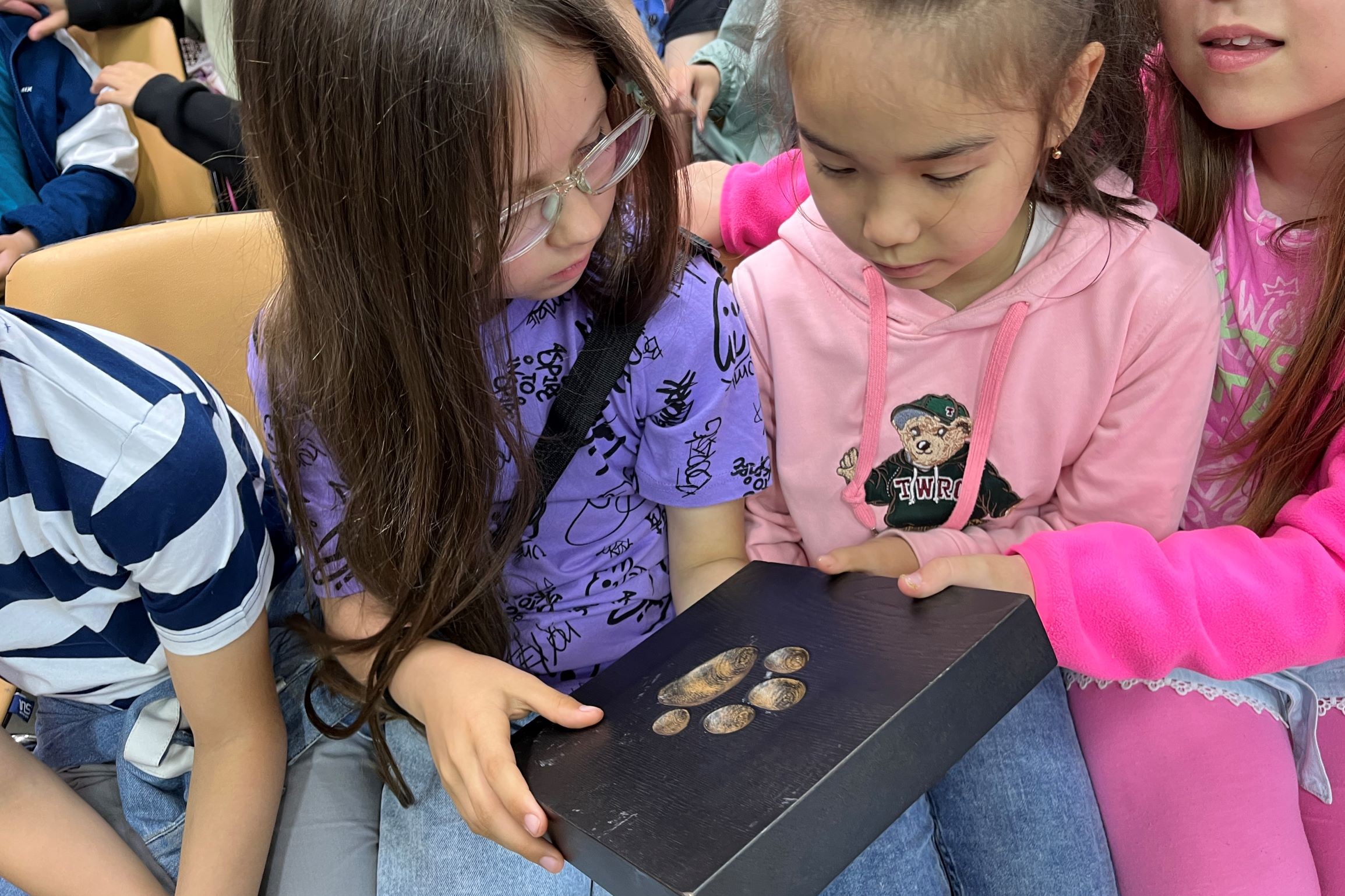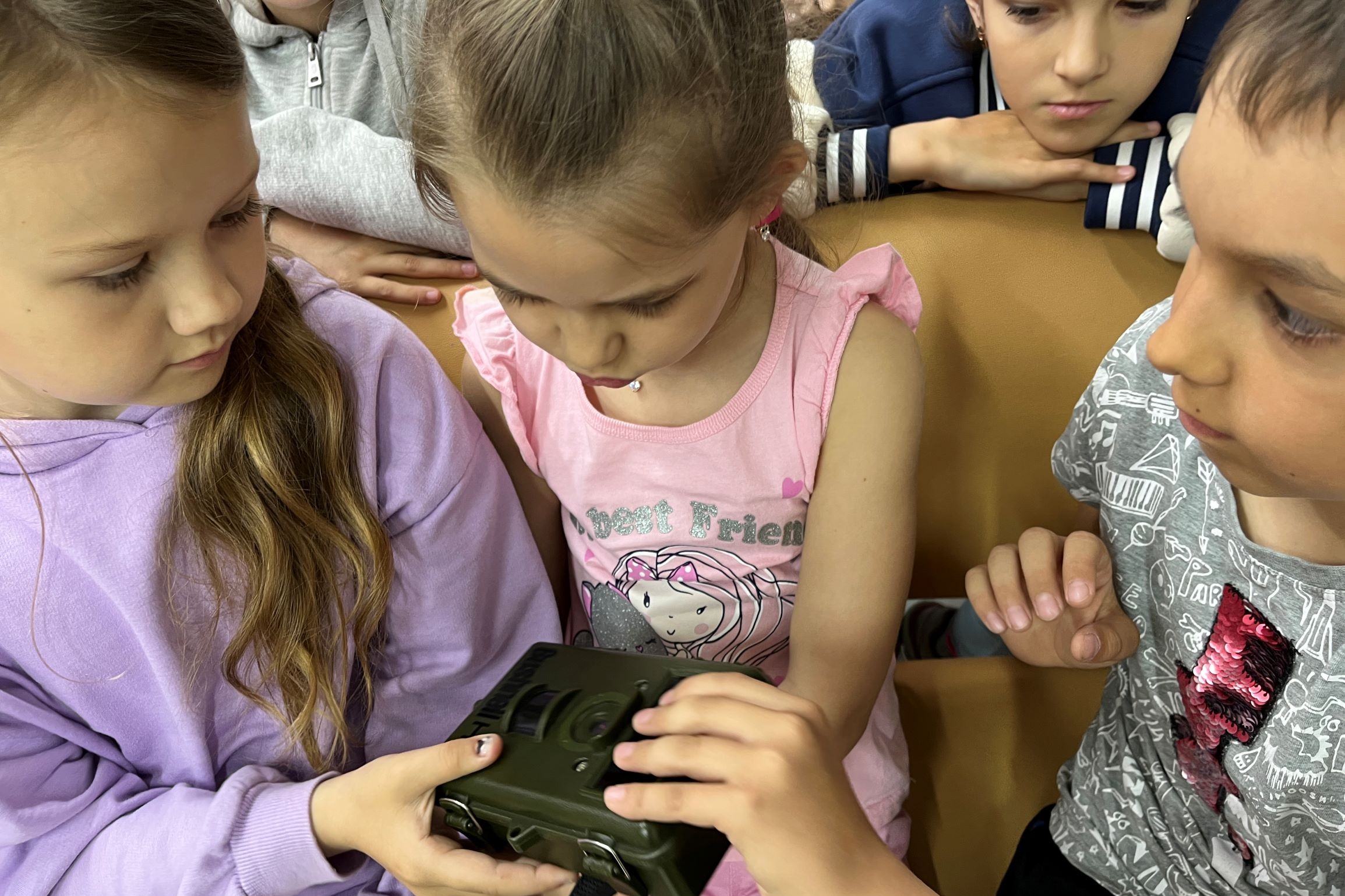 Школьники задавали вопросы, дополняли рассказ лектора, рассматривали и передавали друг другу отпечаток лапы леопарда и настоящую фотоловушку. Ребята получили в подарок буклеты и книжные закладки с символикой «Земли леопарда».
