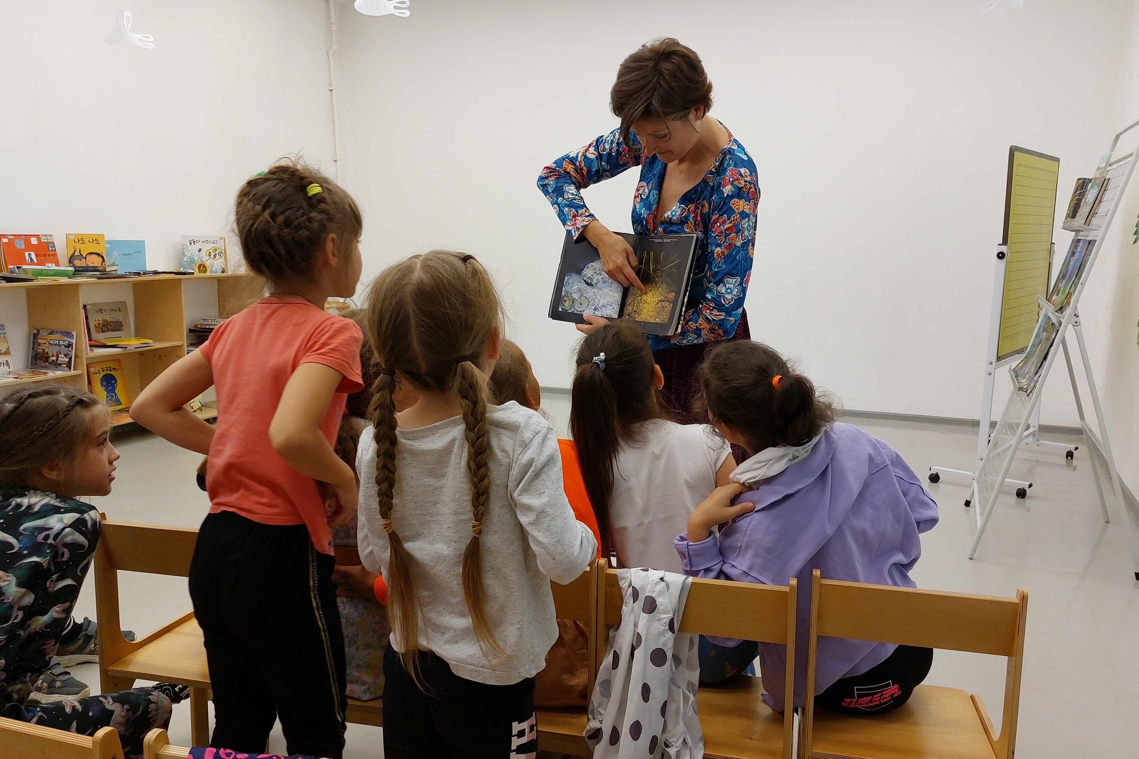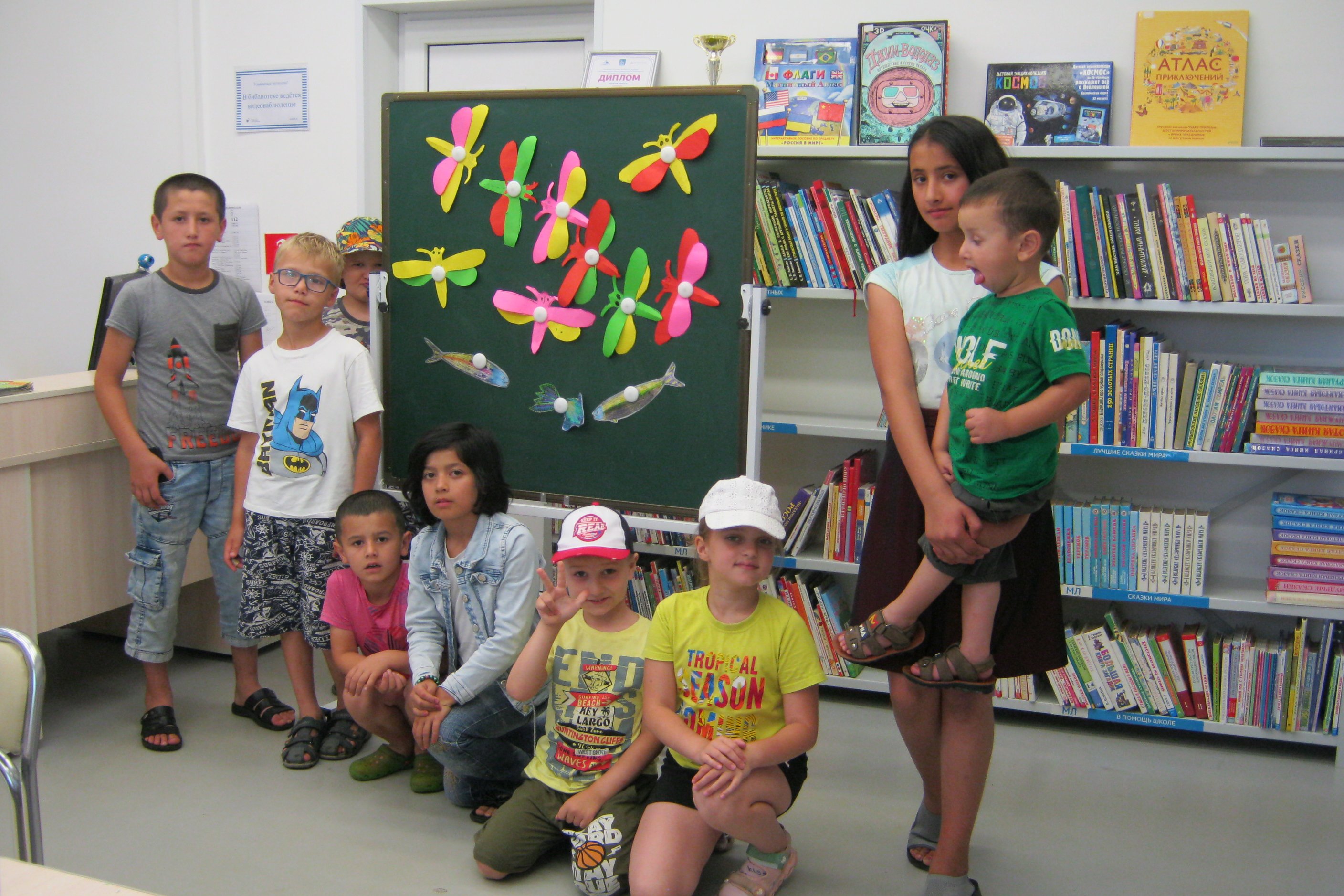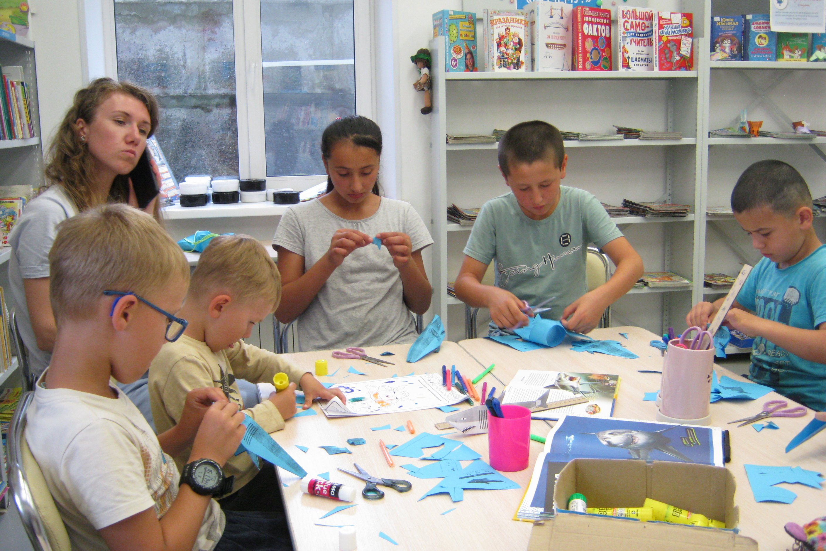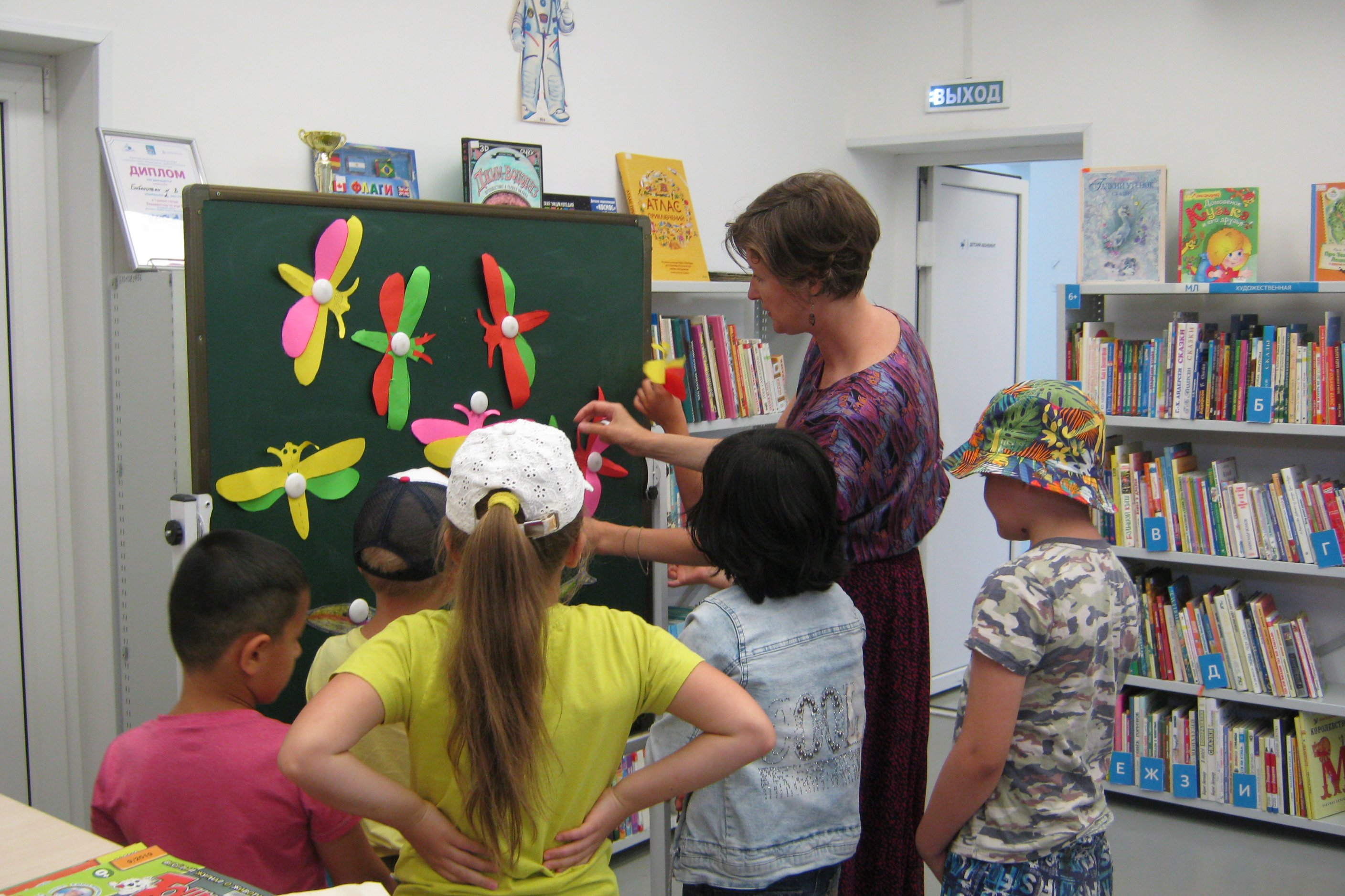 Между прочим, не только с замечательной детской зарубежной литературой знакомятся дети в библиотеке, но и российскими, приморскими именами, например, послушали маленький отрывок из рассказа «Сын таежного волка» дальневосточного писателя, знатока леса Михаила Деменка, где описаны всякие ночные звуки леса: филин, вальдшнеп, летучая мышь, изюбр. А на творческой мастерской, прежде чем приступить к поделке «стрекоза», детвора узнала, что исследователя Дальнего востока, ученого Владимира Арсеньева оказывается совсем не скучно читать, даже если ты еще не взрослый. Потому что есть книга «Встречи в тайге» с замечательными иллюстрациями и вкладышами с рисунками, например, развернув такой вкладыш, можно узнать, как выглядит светлячок или как называется черный с голубым жук – небесный усач. И уж тем более в библиотеке есть несколько детских энциклопедий, где можно посмотреть не только рисунки, но и фотографии зубастого морского обитателя, который вызывает у детей такое любопытство, что одна из самых частых просьб на творческой мастерской: «Когда мы будем делать акулу?».