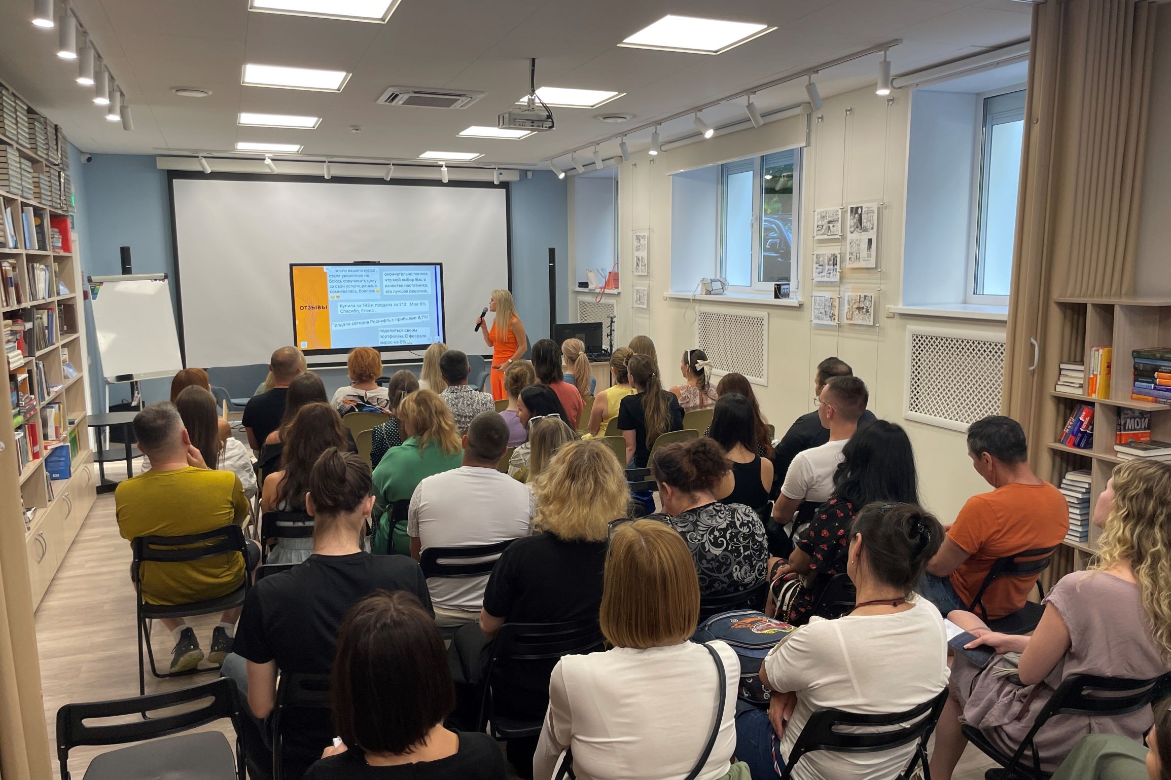 12 июля в Центральной библиотеке им. А Чехова, модернизированной в рамках национального проекта «Культура», прошел мастер-класс от Академии финансовой грамотности Елены Громовой — независимого финансового советника, консультанта от МИНФИН, основателя Инвестклуба и Академии финансовой грамотности, автор образовательных курсов по финансам и инвестициям.