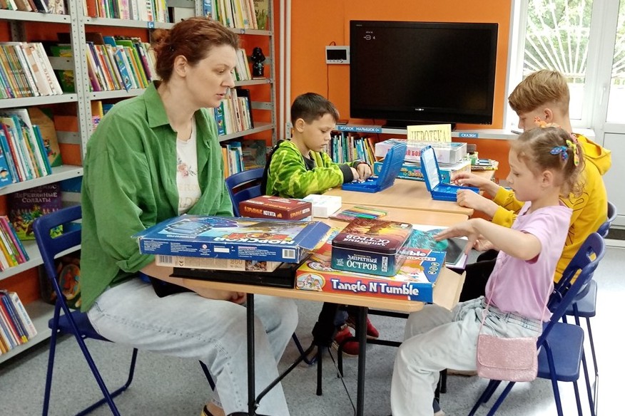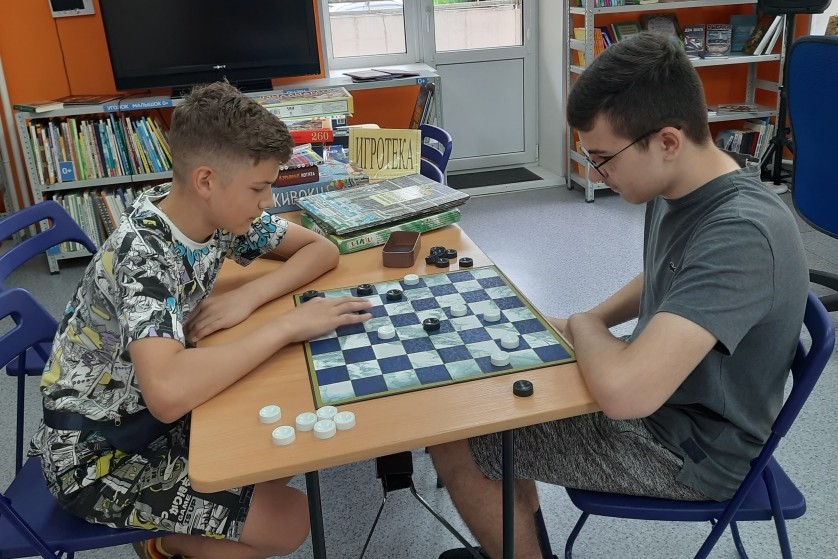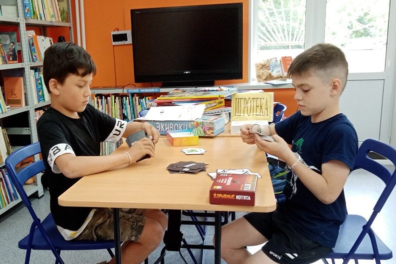 В библиотеке № 20 продолжает работу традиционная программа «Летняя Библиополянка. Игротека», в рамках которой организован отдых детей по интересам: настольные игры (шашки, шахматы, пазлы, «Морской бой», «Бизнесмен»). Ребята с удовольствием осваивают также и новые для них игры (не компьютерные, а настольные) – «Стань звездой», «Экивоки», «Неудержимые единорожки», «Маугли», «Взрывные котята», «Всемирно известная башня лабиринтов» из серии «Детектив Пьер распутывает дело». Наши юные друзья очень любят приходить в библиотеку, ведь здесь так много интересного: книги, журналы, красочные выставки, настольные игры, и всегда есть возможность посмотреть мультфильм по программе «Дружат книги и кино», принять участие в мастер-классе, пообщаться со сверстниками. Дети принимают живое участие в беседах, в играх, викторинах, выбирают книги по программе летнего чтения. А мальчики Милан Гу и Алексей Бутузов часто заходят в библиотеку поиграть в морской бой и шашки.