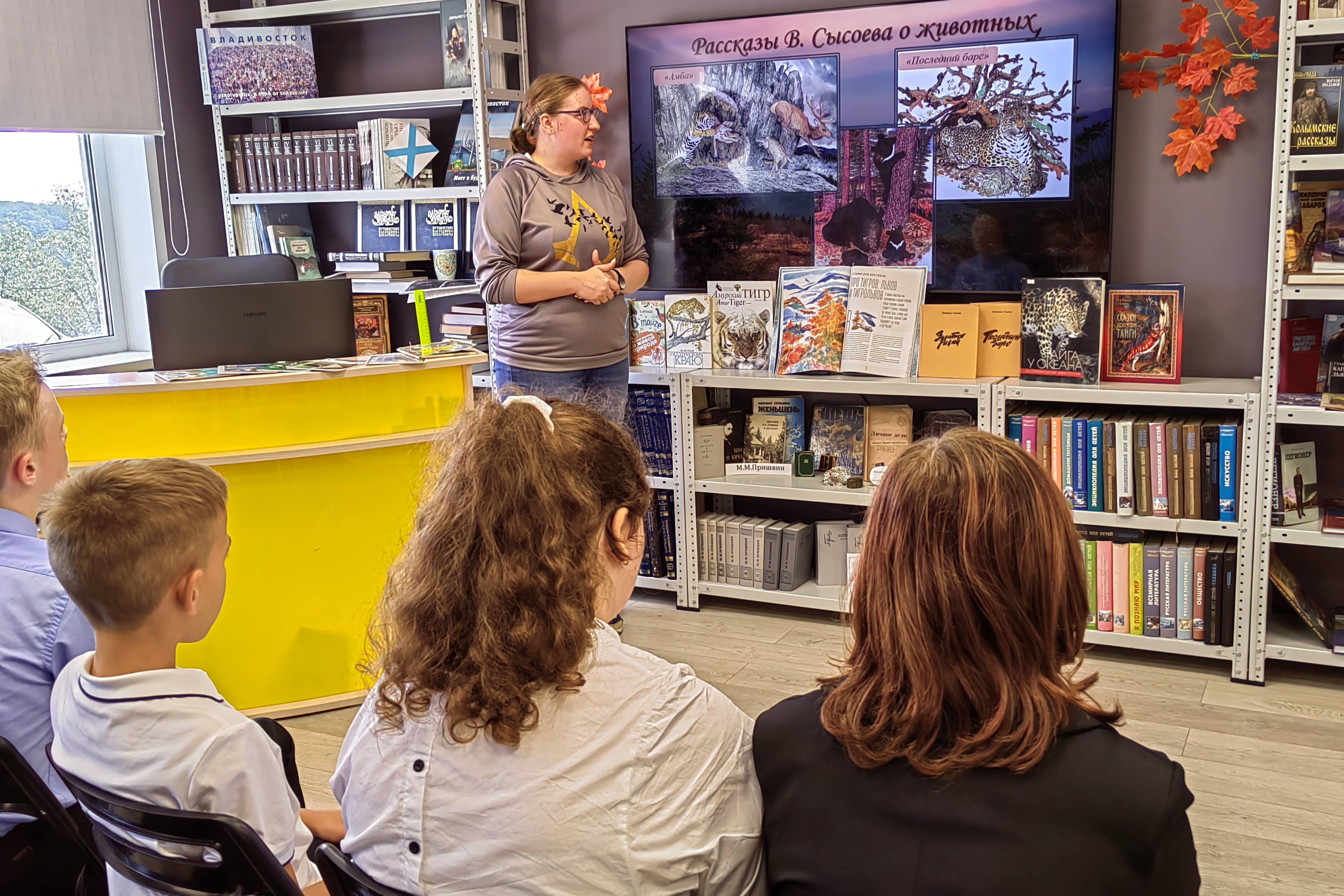 Следующей точкой зрения, которой поделилась библиотекарь с аудиторией, была позиция увлеченного охотоведа-зоолога Всеволода Петровича Сысоева, который в своих произведениях очень отчетливо показал свое отношение как к браконьерам, так и в целом как ранее практиковавшемуся промыслу отлова зверей для цирков и зоопарков, написав настолько яркие сцены, что в неразумности такой работы уже не остается сомнений. Также Сысоев интересно рассказал о такой профессии как охотоведы – специалистах широкого профиля, занимающихся контролем численности тех или иных видов растений и животных, которые вмешиваются в нужный момент в экосистему для сохранения разнообразия видов.