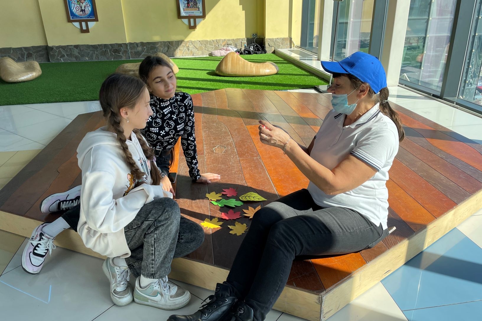 Девочки с восторгом примерили на себя красивую шляпу Осени, устроив фотосессию.