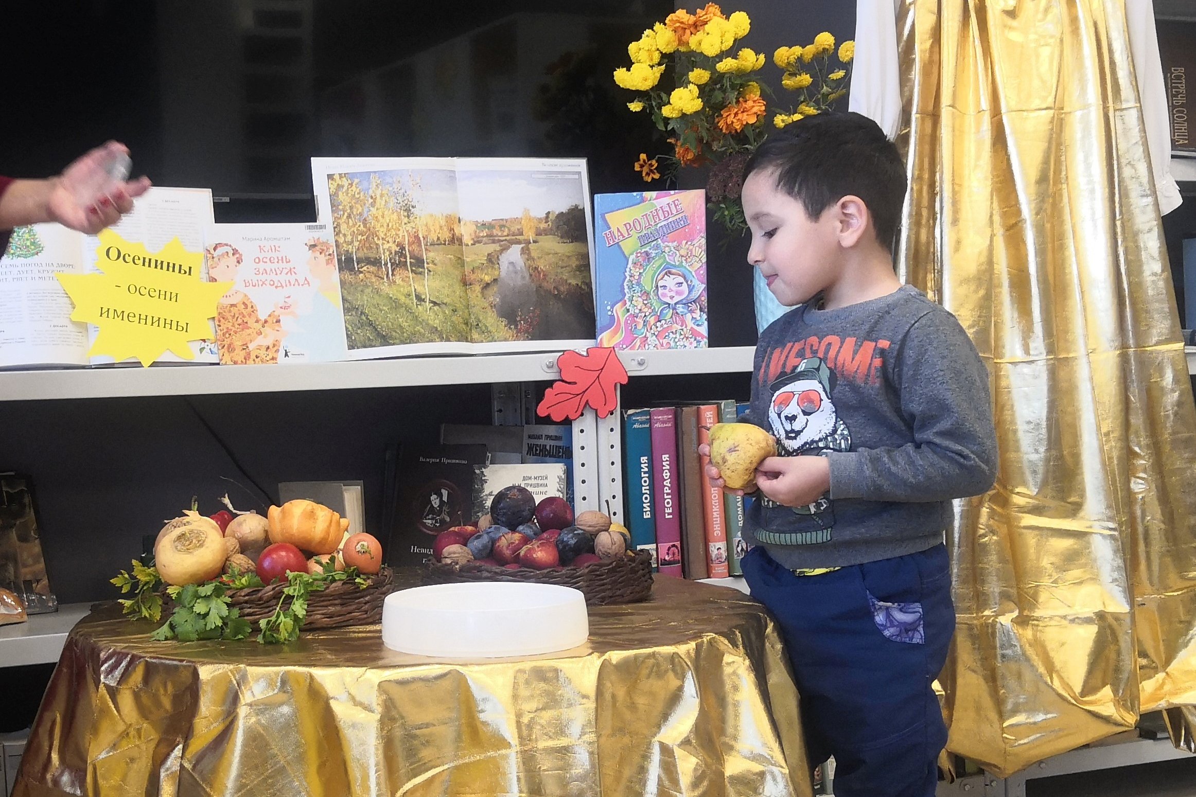 Об осенних праздниках и традициях говорили в библиотеке № 21 с воспитанниками детского сада №46. Издавна русский народ праздновал Осенины, как особый радостный праздник – праздник благодарности природе за щедрый урожай. Библиотекари организовали для детей импровизированную ярмарку, и чтобы на нее попасть, ребята отгадывали загадки. На ярмарке дошкольники знакомились с урожаем: тыквами, морковью, огурцами, свеклой и прочими овощами.