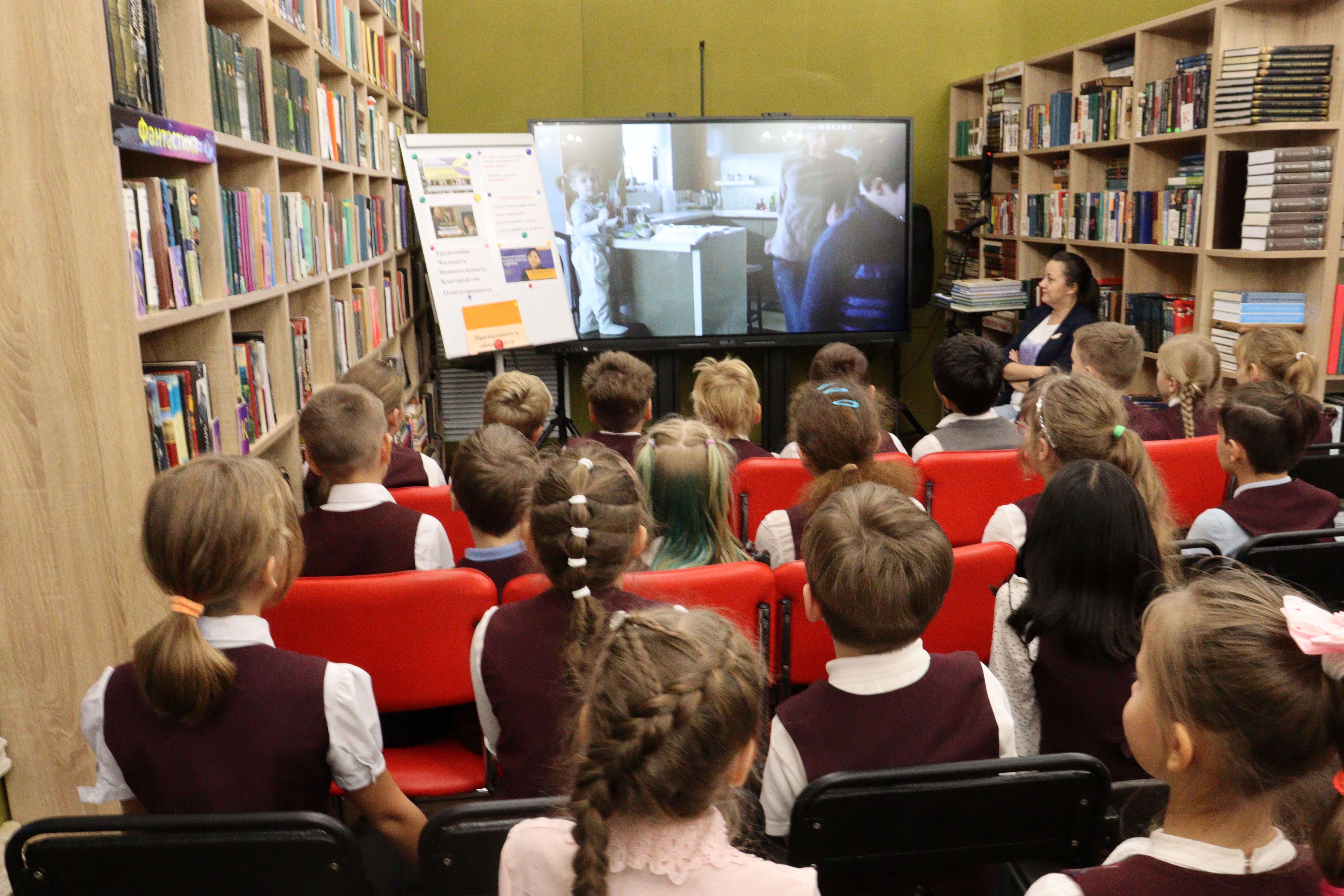 12 октября в библиотеке № 4 третьеклассники, учащихся «СОШ № 22» рассуждали о том, что такое семейные ценности, традиции и трудолюбие, а также смотрели фильм «Чистодей».
