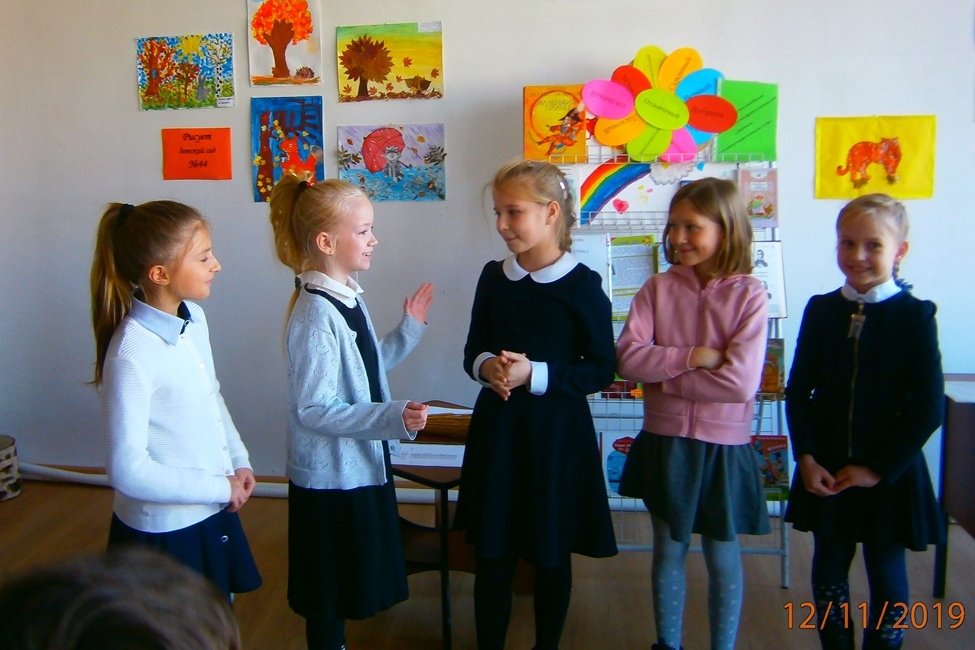 12 ноября библиотека №3 организовала игровой познавательный час «Наша дружба крепка — нам беда не страшна» для учащихся 3 «Б» класса школы № 18. Разговор начался с чтения и обсуждения притчи Л.Н. Толстого «Отец и сыновья». Дети пришли к выводу, что если люди будут действовать согласованно, дружно, без ссор, раздоров, им никто не будет страшен. Узнали о новом понятии – «толерантность», его символе – разноцветной радуге. Обсудили 10 законов дружбы и дружно смастерили красивейший «Цветок дружбы». Библиотекарь рекомендовала книжки о дружбе, дети с удовольствием встретились со старыми знакомыми: Мишкой, Дениской, Люсей Синицыной, Баранкиным и др. Познакомились с новыми для себя книжками Марии Бершадской про большую маленькую девочку, Кристины Нестлингер про Франца и Марии Парр про норвежских подружек. Учились делать комплименты, рассказывали, стихи.