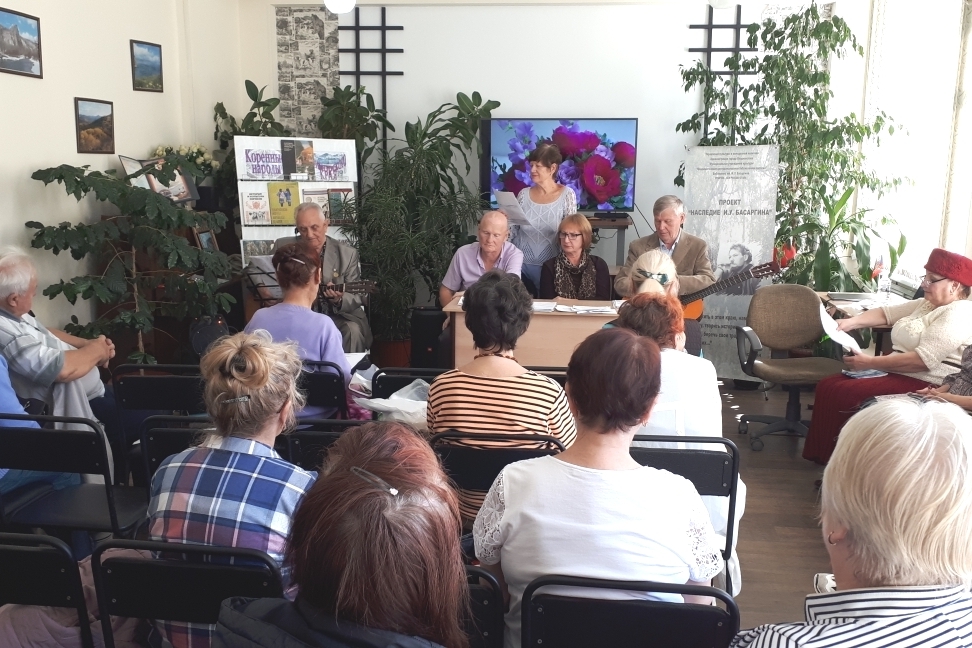 Очередные посиделки в конце октября состоялись в музыкально-поэтическом клубе «Мои года – моё богатство» в библиотеке им И.У. Басаргина. Наверно, каждый из присутствующих вспомнил какие-то моменты своей жизни, связанных с песней. Традиционно было предоставлено слово поэтам: Наталье Бредихиной, Татьяне Денисенко, Виталию Левченко, Ульяне Кочергиной. Акапельно исполнили музыкальные номера Галина Ёжикова, Наталья Гончарова. Восторженно встретила публика ветеранов клуба Анатолия Сафонова, Людмилу Ивадникову, Николая Морозова, Василия Шиляева. Своеобразным итогом встречи зазвучали песни 30-50-х годов в исполнении Владимира Мороза. Клуб чрезвычайно популярен среди читателей библиотеки: каждый имеет возможность поделиться своими творческими увлечениями.