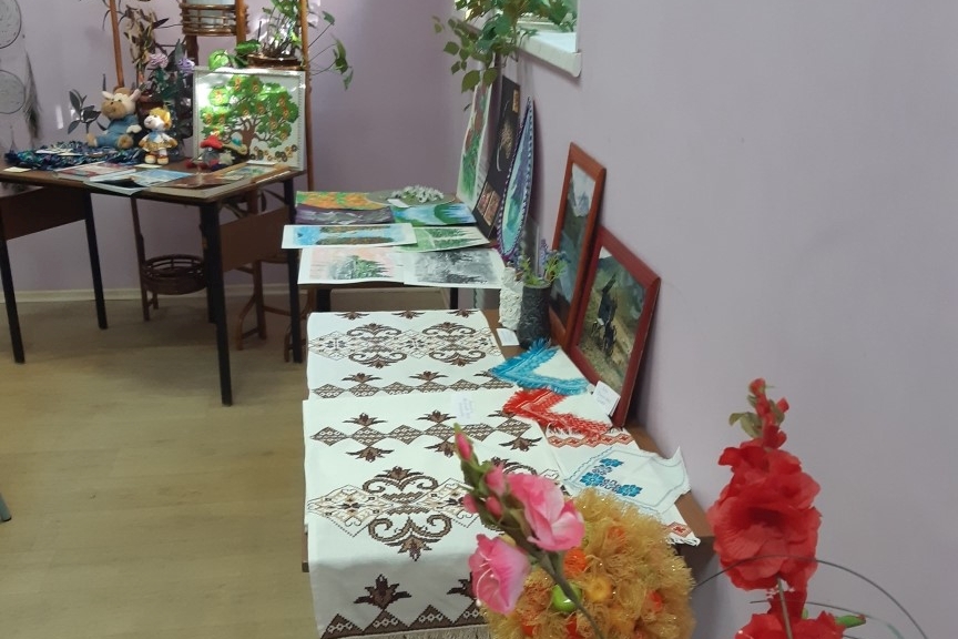 Накануне в библиотеку потянулись рукодельницы со своими работами. Столы, подготовленные для выставки, быстро наполнились работами в разных техниках. Были представлено шитье и вязание, множество вышитых работ в разных техниках, игрушки из разных материалов и ловцы снов.
