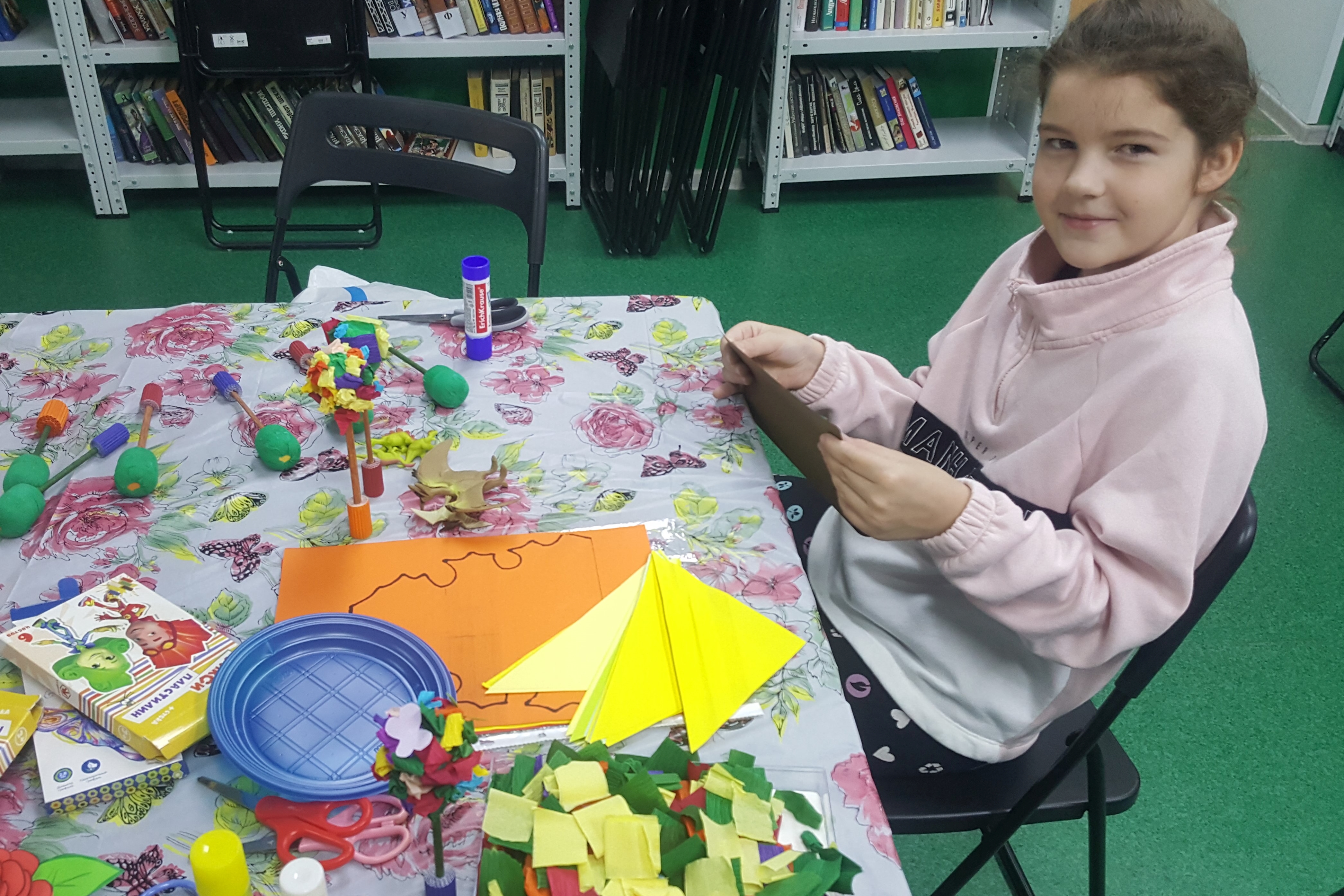 Дети вместе с родителями заготавливают природный материал, сотрудники библиотеки готовят цветную бумагу, картона и т.д. И конечно все вместе выбирают тему для каждой поделки. Первой важной темой стал мастер-класс, посвященный учителям. Ребята сделали своими руками яркие, праздничные открытки и вручили своим учителям в школе. Все участники очень ждут каждое следующее занятие и приводят с собой родителей, бабушек и дедушек и конечно своих друзей.
