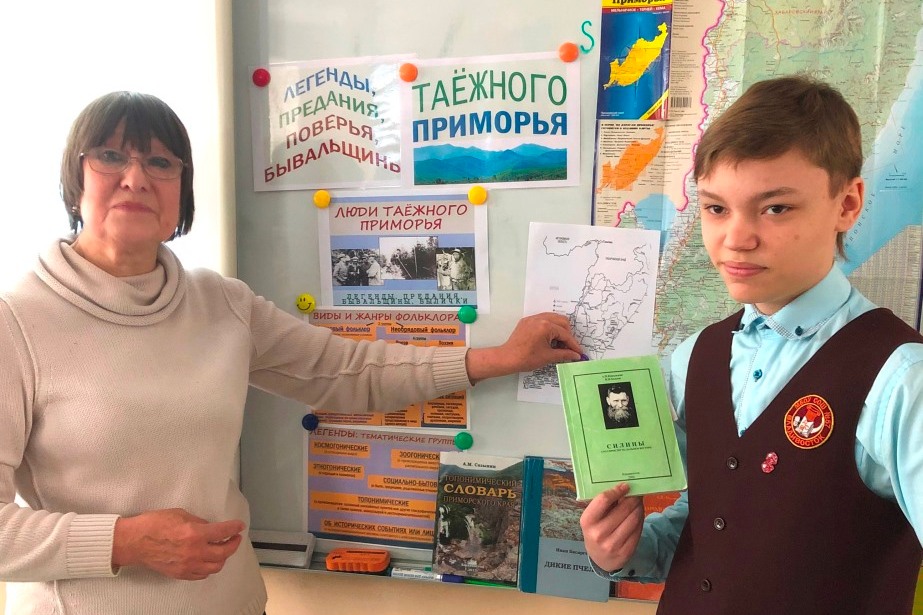 В заключение занятия в процессе работы с контурной картой и физической картой Приморского края соотнесли имена персонажей легенд с теми территориями края, где происходили события, участниками которых они являлись.