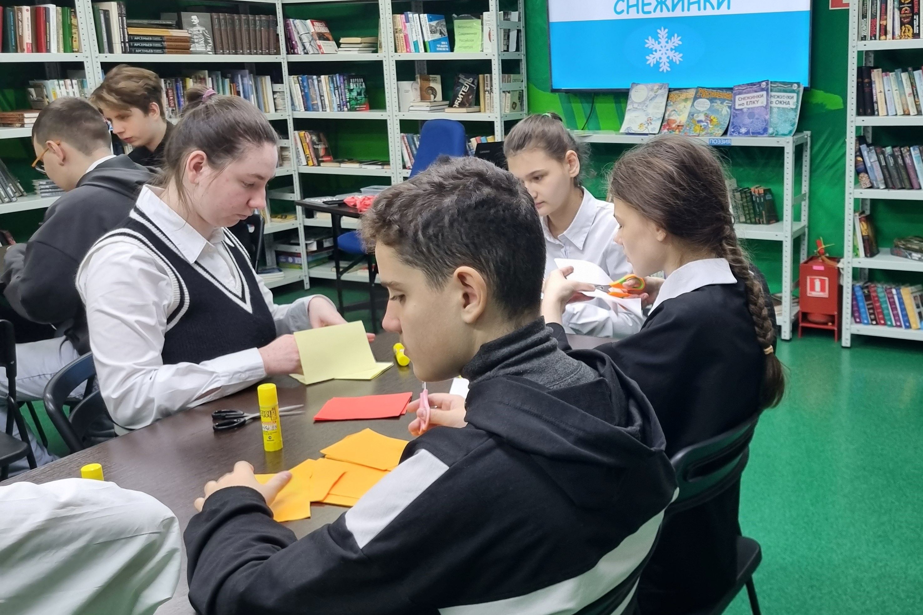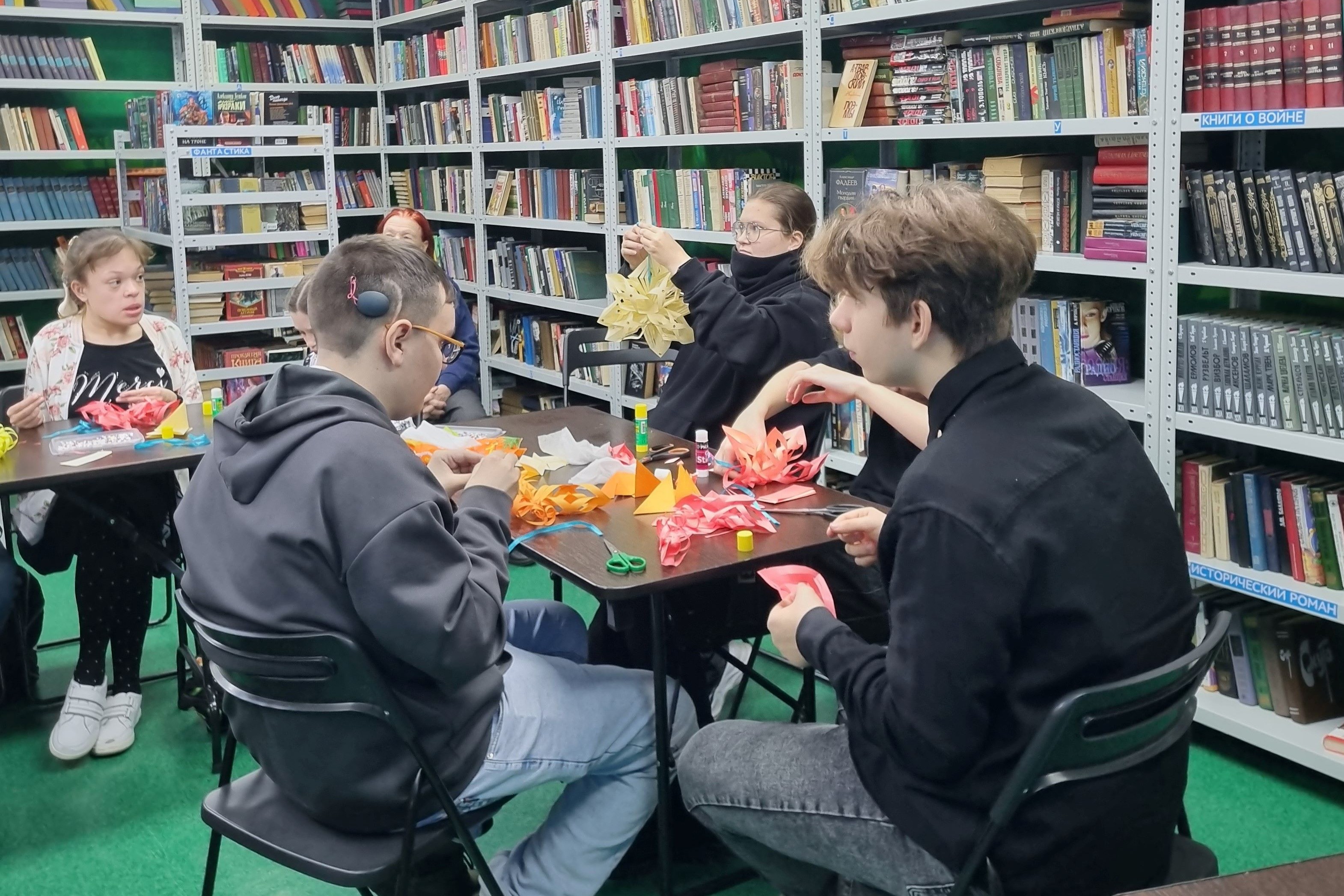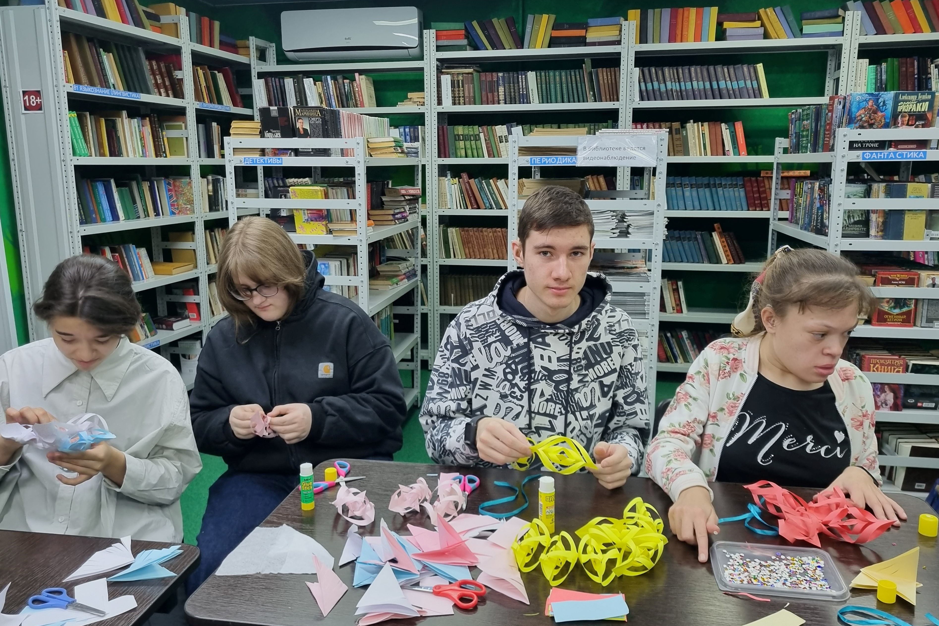 В библиотеке № 17 прошел 5 декабря мастер-класс «Новогодняя снежинка» для воспитанников КГОБУ «КШИ 1 вида».