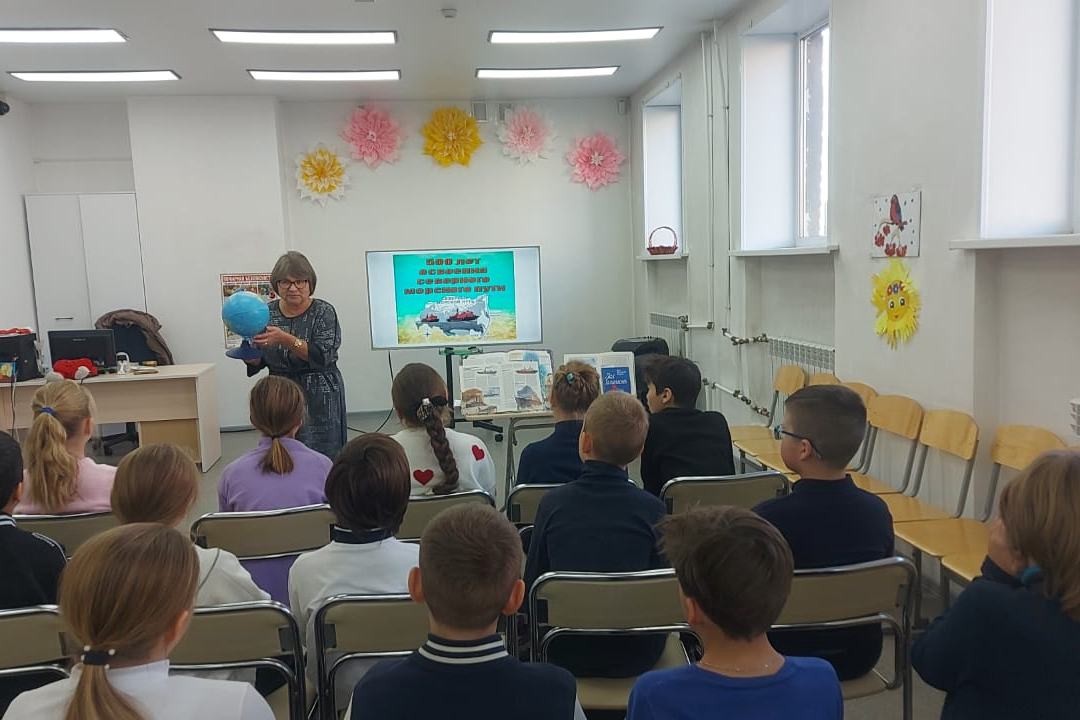17 декабря сотрудники библиотеки им. А.С. Пушкина подготовили и провели для учеников 5 «В» класса СОШ № 9 интерактивное занятие, приуроченное к 500-летию началу освоения Северного морского пути.