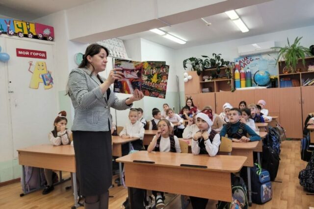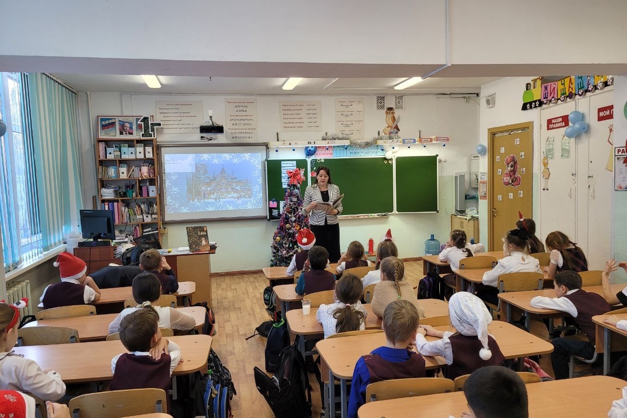 Сотрудники библиотеки № 4 побыли у учащихся 2 «Г» класса СОШ № 22 и создали новогоднее настроение, познакомили ребят с огромным ассортиментом детской литературы по теме, рассказали интересные факты из истории новогодних праздников и традиций в России и в других странах. Ну и как же без доброй новогодней сказки?