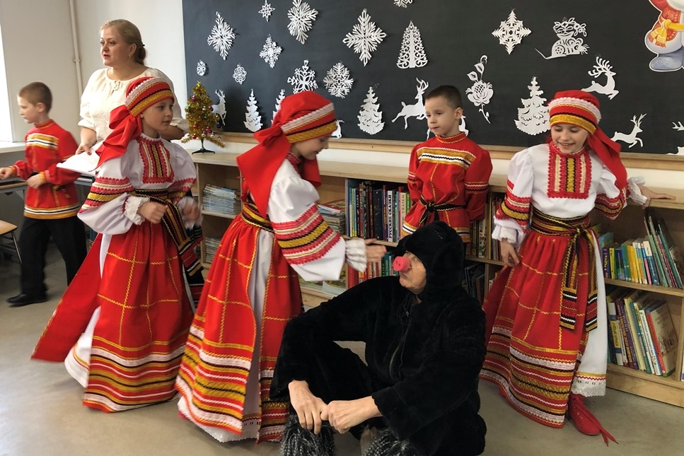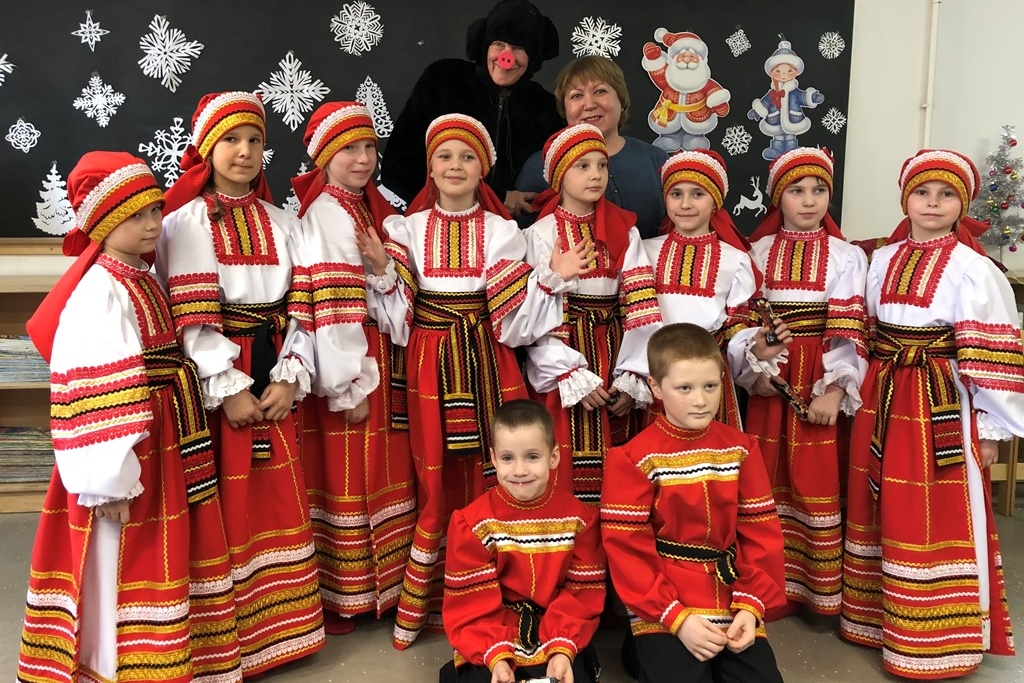 Ребята из детского фольклорного коллектива «Живинка» под руководством Дудкиной Натальи Григорьевны спели колядки, показали обряд посевания, когда ребятня приносила с собой в варежках зерно и рассыпала его в горницах, привлекая богатый урожай. Колядовщики получили сладкие подарки в свои корзинки.
