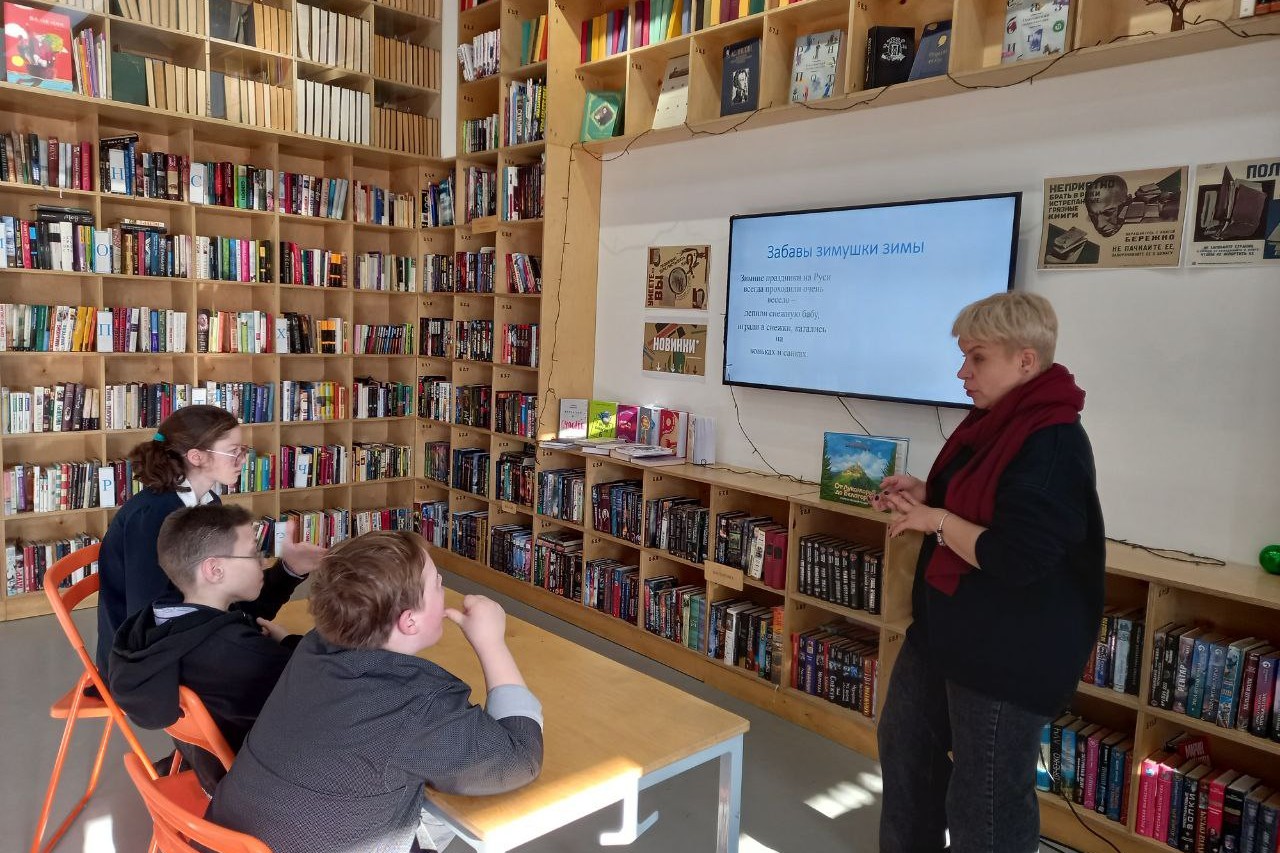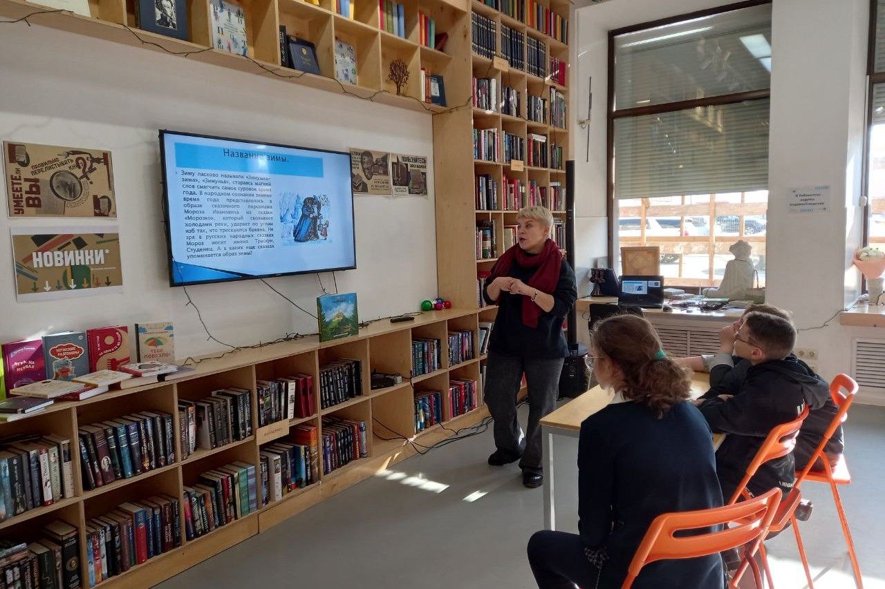 18 января в библиотеке БУК состоялся литературно-познавательный урок «Забавы Зимушки-зимы» для ребят 6 «А» класса КШИ № 1. На нем юные участники мероприятия узнали, как назвали зимние месяцы в древние времена, кто такой Трескун, что такое Святки и почему принято было гадать именно в эти дни, почему купаются в проруби в Крещенье. Прочитали святочный рассказ Фёдорова-Давыдова «Хаврошина ёлка». Вспомнили о языческом боге — Коляде, который, по мнению наших предков, был богом мира, земным божеством, открывающим путь новому лету, новому свету. Посмотрели и обсудили фрагмент с колядками фильма сказки А. Роу «Ночь перед Рождеством». Организаторы так же рассказали детям о традициях катания на Масленицу, которые принимали невиданный размах и которые в некоторых местах называли «катальным заговеньем». Познакомились с картинами Ф. Сычкова «С гор», Кустодиева «Масленица» и Сурикова «Взятие снежного городка» и обсудили увиденное.