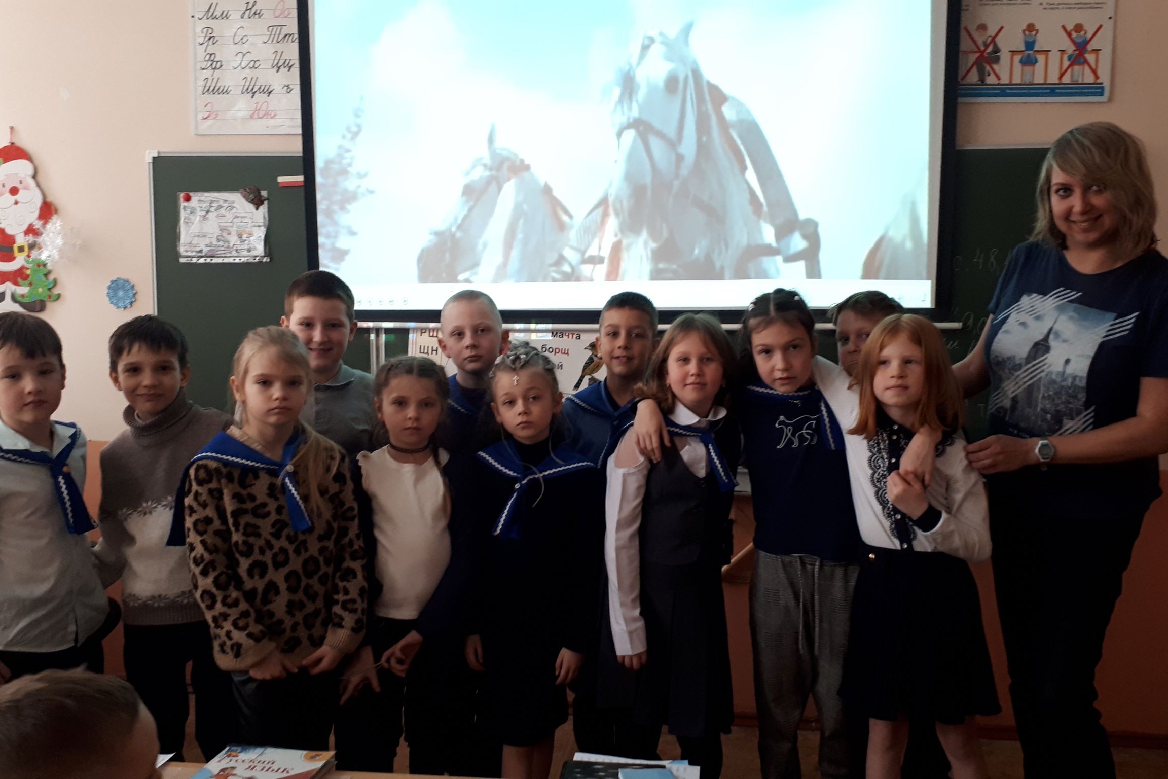 Встреча открылась презентацией «История развития детского кино в России», из которой узнали о личности Александра Птушко (1900-1973г.г.) — советский кинорежиссёра, мастер сказочного жанра в кино. Ученики увидели рассказ об интересных фактах из истории как известных картин, так и новых фильмов, которые сегодня дополняют полнометражную ленту. Услышали о фильмах «Новый Гулливер», «Дети капитана Гранта», «Золотой ключик», «Каменный цветок», «Илья Муромец», «Сказка о потерянном времени». Так же ребята вспоминали какие фильмы они уже видели. Затем ребята посмотрели несколько интересных отрывков из фильмов-сказок: «Морозко», «Огонь, вода и… медные трубы», «Варвара-краса, длинная коса», «Конек-Горбунок», режиссёра Александра Роу.
