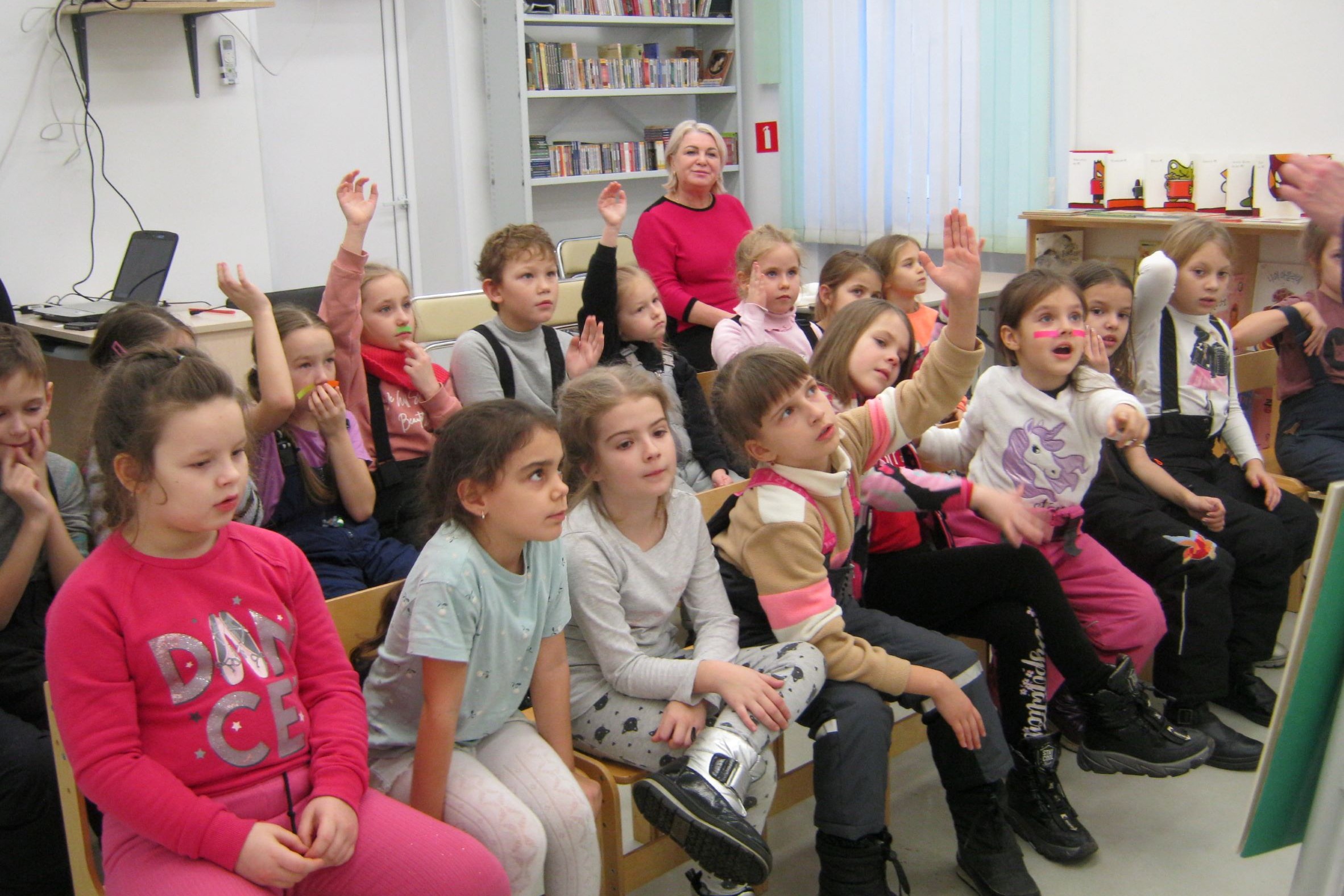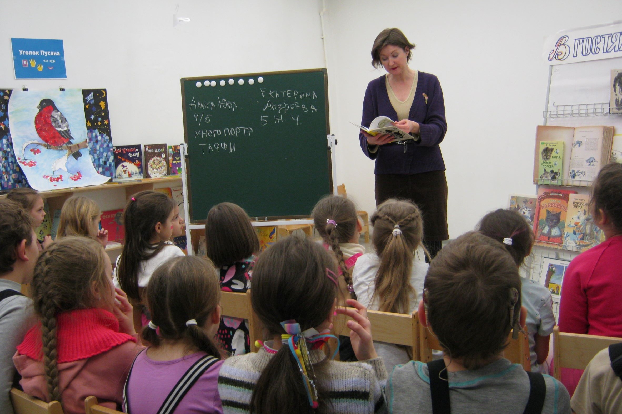 В библиотеке № 8 продолжаются беседы со школьниками о художниках-иллюстраторах. 18 января воспитанники детского развивающего центра «Цветные ладошки» знакомились с творчеством молодой художницы Алисы Юфа. Детвора сравнила две самокатовские книги Энн Файн «Ответный удар Кота-убийцы» и «Дневник кота-убийцы. Все истории»; в первой книге иллюстрации Екатерины Андреевой, во второй – Алисы Юфа. Работы художниц над книгами, конечно же, сравнивались для того, чтобы увидеть разные подходы к иллюстрированию ироничных историй, рассказанных от лица домашнего кота Таффи.