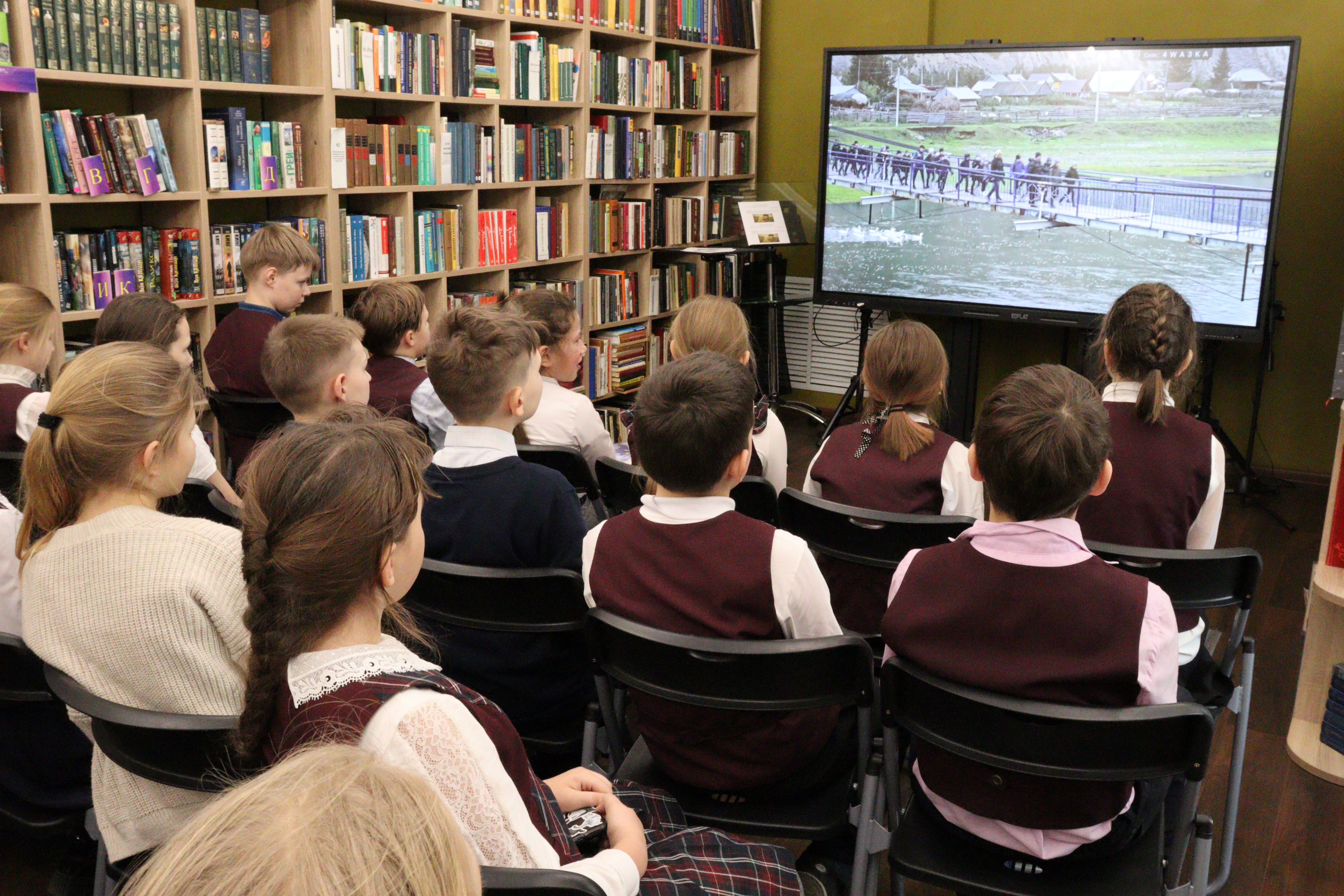 Библиотека № 4 на протяжении нескольких лет проводит ежемесячные показы киноуроков для учащихся младшей и средней школы в рамках программы библиотеки «Разговоры о важном», раскрывая суть нравственных ценностей: доброты, уважения, чести и честности, патриотизма, мужества, дружелюбия, бережного отношения к окружающей природе. 8 февраля учащиеся 4 «А» класса МБОУ «СОШ № 22» приняли участие в просмотре и обсуждении киноурока «Песня ветра», в рамках Всероссийского народного проекта «Киноуроки в школах России». Этот фильм школьникам подарила республика Башкортостан. О чём он? О дружелюбии башкирского народа, величественных пейзажах Башкирии, любви к родному краю и умении чувствовать и беречь живую природу, как человека, а человека, как природу. Можно ли сравнить жизнь бабочки и человека, что значит быть дружелюбным и решать конфликты мирным путём, что значит быть потомком своего народа и соблюдать его традиции? Школьники охотно отвечали на вопросы и попытались понять, что значит любить природу как человека, а человека, как природу. Ф. М. Достоевский однажды сказал: «Кто не любит природы, тот не любит человека».