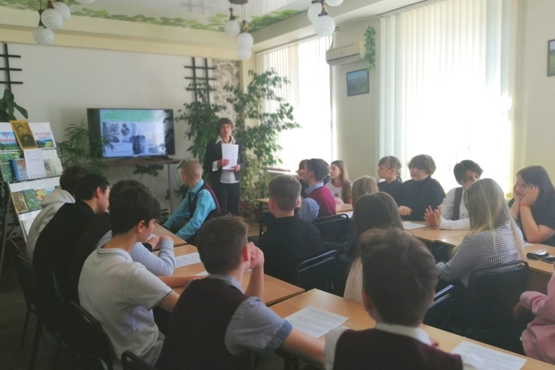 Литературный урок с учащимися 8 «Б» класса МБОУ «СОШ № 57» в рамках программы «Басаргинская строка», состоявшееся 13 марта 2020 г. был посвящен дню рождения писателя, имя которого носит библиотека.