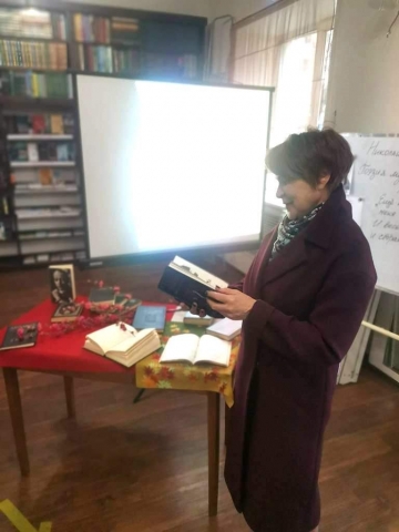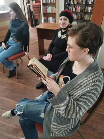 Наталья Анатольевна давно и плодотворно сотрудничает с библиотекой, а также является активным читателем. И в этот раз Наталья выбрала для себя томик избранных стихов Н.С. Гумилева из фонда библиотеки.