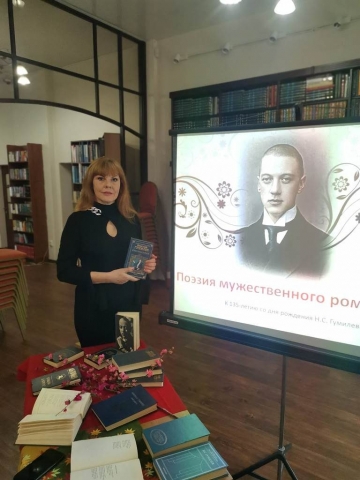 16 апреля в библиотеке №10 состоялся праздник поэзии, посвященный 135-летию со дня рождения русского поэта Серебряного века, создателя школы акмеизма, прозаика, переводчика и литературного критика Николая Степановича Гумилева. В этот день читатели могли поучаствовать в интерактивной выставке, послушать стихи Н.С. Гумилева в исполнении знаменитых актеров, углубить свои знания о творчестве поэта.
