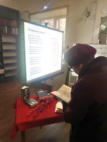А вечером стихи Гумилева читала Наталья Анатольевна Форикова, журналист, поэтесса, председатель Приморского отделения общероссийской общественной организации «Российский союз писателей». Проникнувшись символизмом произведений Гумилева, Наталья читала вдохновенно и заставляла слушателей проникнуться прекрасными строками до глубины души.