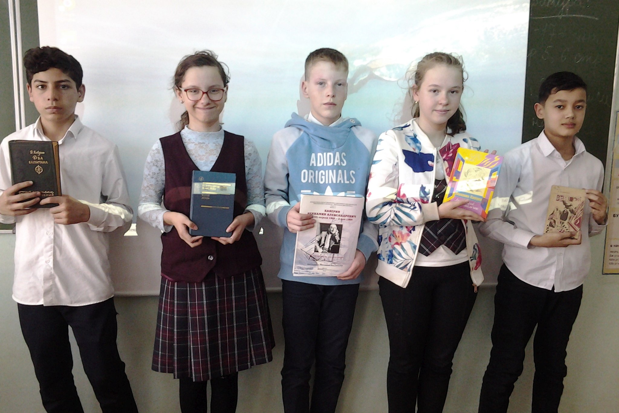 Рассказывая об авторе, сотрудники библиотеки №16 обратили внимание ребят на роман «Два капитана» — эта книга удивительной судьбы, она является визитной карточкой писателя. Просматривая буктрелер по книге, сопровождаемый музыкой Г. Свиридова к одноименному фильму, говорили о том, что это роман о справедливости, доброте, человечности, смысле жизни и достижении цели. Увидевшая свет в 1938 году книга стала любимой у не одного поколения детей и молодежи. Она не только влияет на читателя, но ведет по жизни. Известны примеры, когда молодые люди «делали жизнь» по примеру летчика Сани Гринева. В годы Великой Отечественной войны она поддерживала боевой дух бойцов, ее возили за собой, Входе раскопок поисковиков, был найден советский самолет, сбитый в 1943 году, в кабине пилота нашли поврежденную временем книгу «Два капитана» — этот факт поразил ребят.