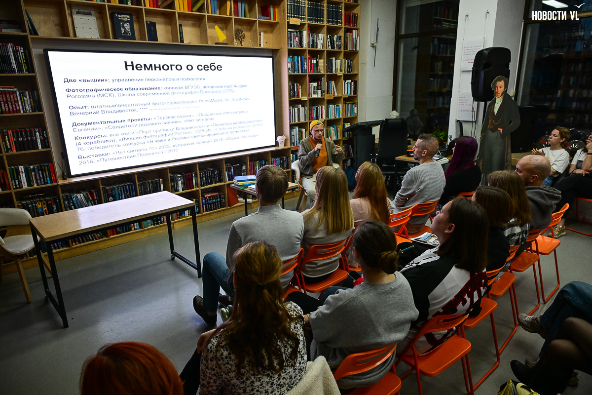 «Больше всего впечатлила лекция про фотоистории, потому что парень очень весело и на своём живом опыте рассказывал, и всё это подкреплялось большим количеством визуала. И это ещё пересекается с писательством, которым я занимаюсь. Потому что и там, и там рассказываются истории, есть контекст, есть взаимосвязи, вторые и третьи уровни смыслов – всё это важно. И лектор говорил об этом, опираясь на фото», – поделился молодой приморский поэт Александр Левковец.