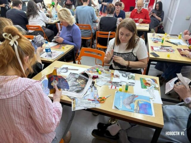 В прошедшие вечер и ночь небольшое помещение читального зала библиотеки «Бук» на Светланской, 55 во Владивостоке изменило формат и превратилось в площадку, на которой жители и гости города создавали коллажи, слушали лекции о дизайне и гастрономии, играли в квиз и обменивались книгами. Именно так проходила ежегодная всероссийская акция «Библионочь-2026», которую, отмечают организаторы, люди ждали весь год.