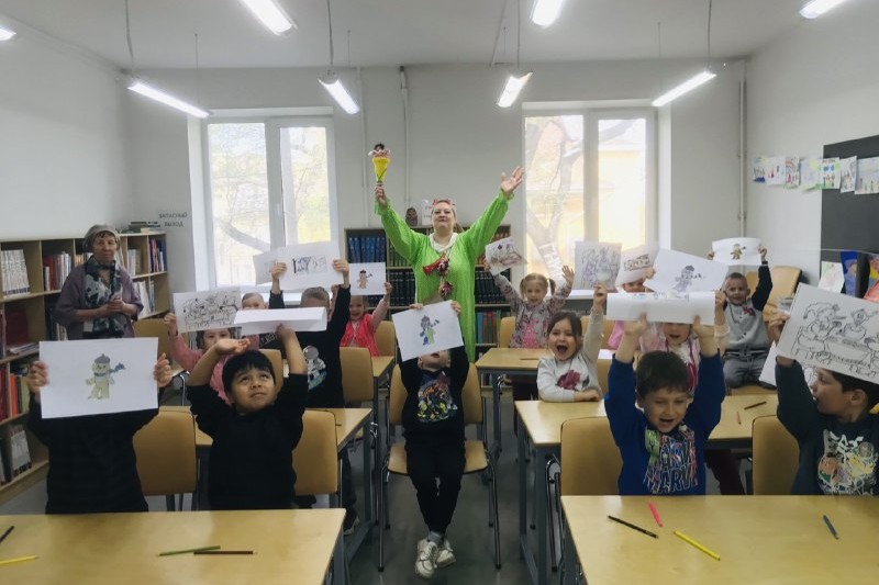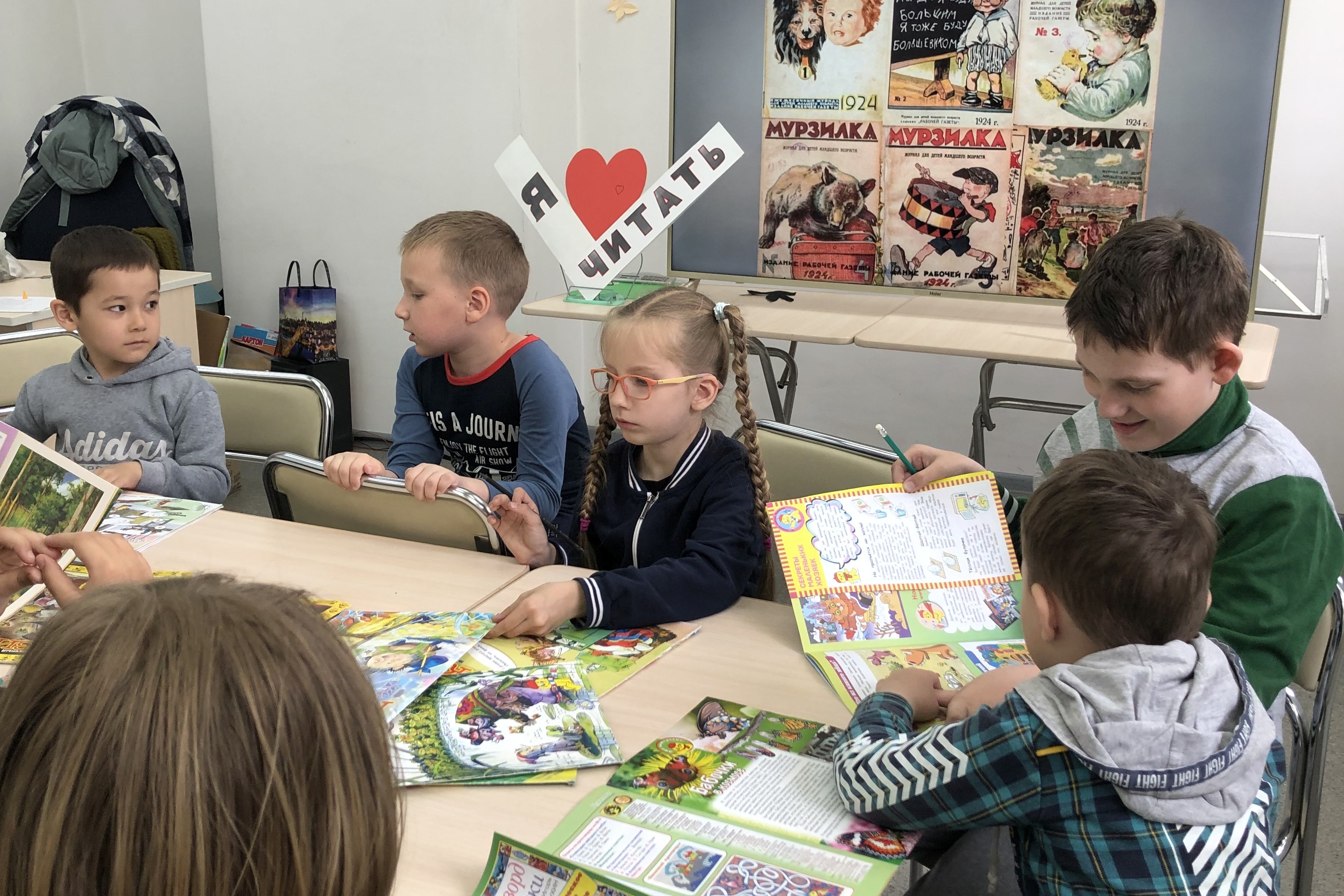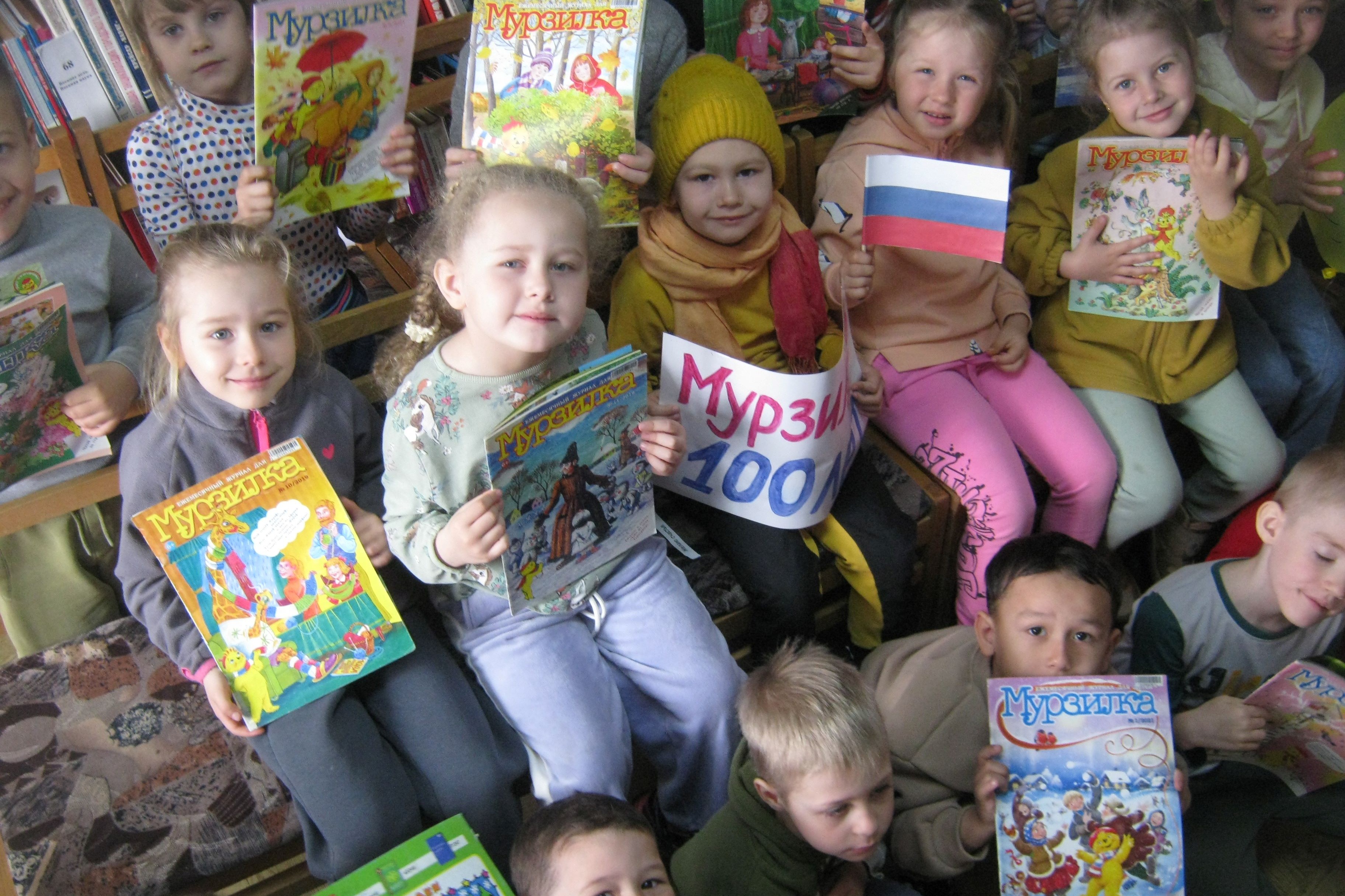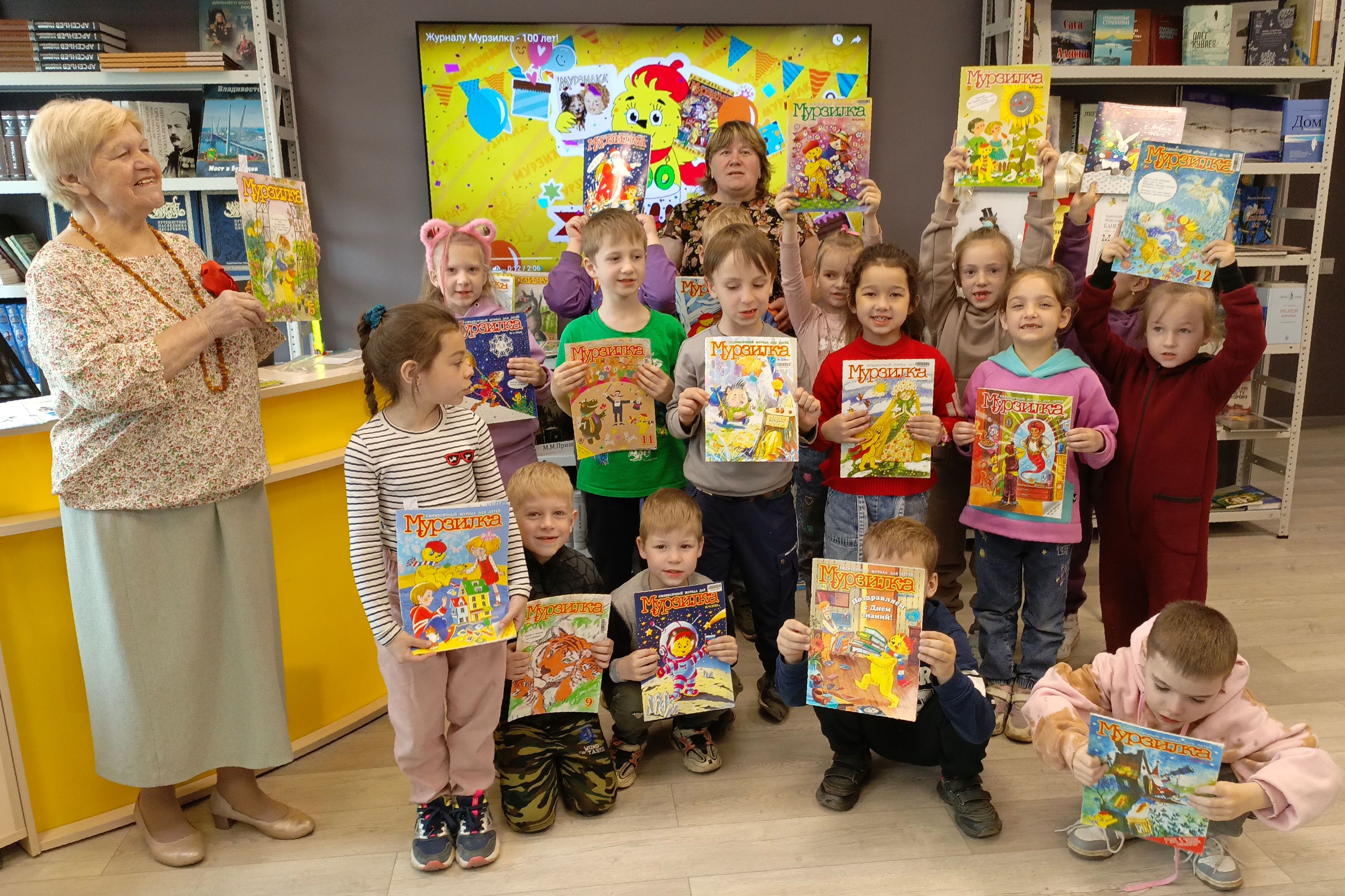 В детскую библиотеку № 5 ребята из детского сада № 25 пришли в гости к друзьям главного персонажа журнала «Мурзилки», Смешуне и Петюне, которые поведали им истории о десятках поколений таких же девочек и мальчиков, для которых «Мурзилка» навсегда остался в памяти лучшим другом и любимым героем. С которым прошли прекрасные мгновения их детства, озарённые, хорошими стихами, красивыми картинами, добрыми рассказами и весёлыми историями. Теперь ребята познакомились с ним лично! Правильно отыскали все пропавшие буквы в четверостишьях викторины, совершили путешествие вместе с мультипликационным «Мурзилкой» и помогли исправиться двоечнику с картины «Опять двойка», а главное раскрасили каждый своего «Мурзилку», которого забрали с собой и с которым теперь будут крепко дружить!