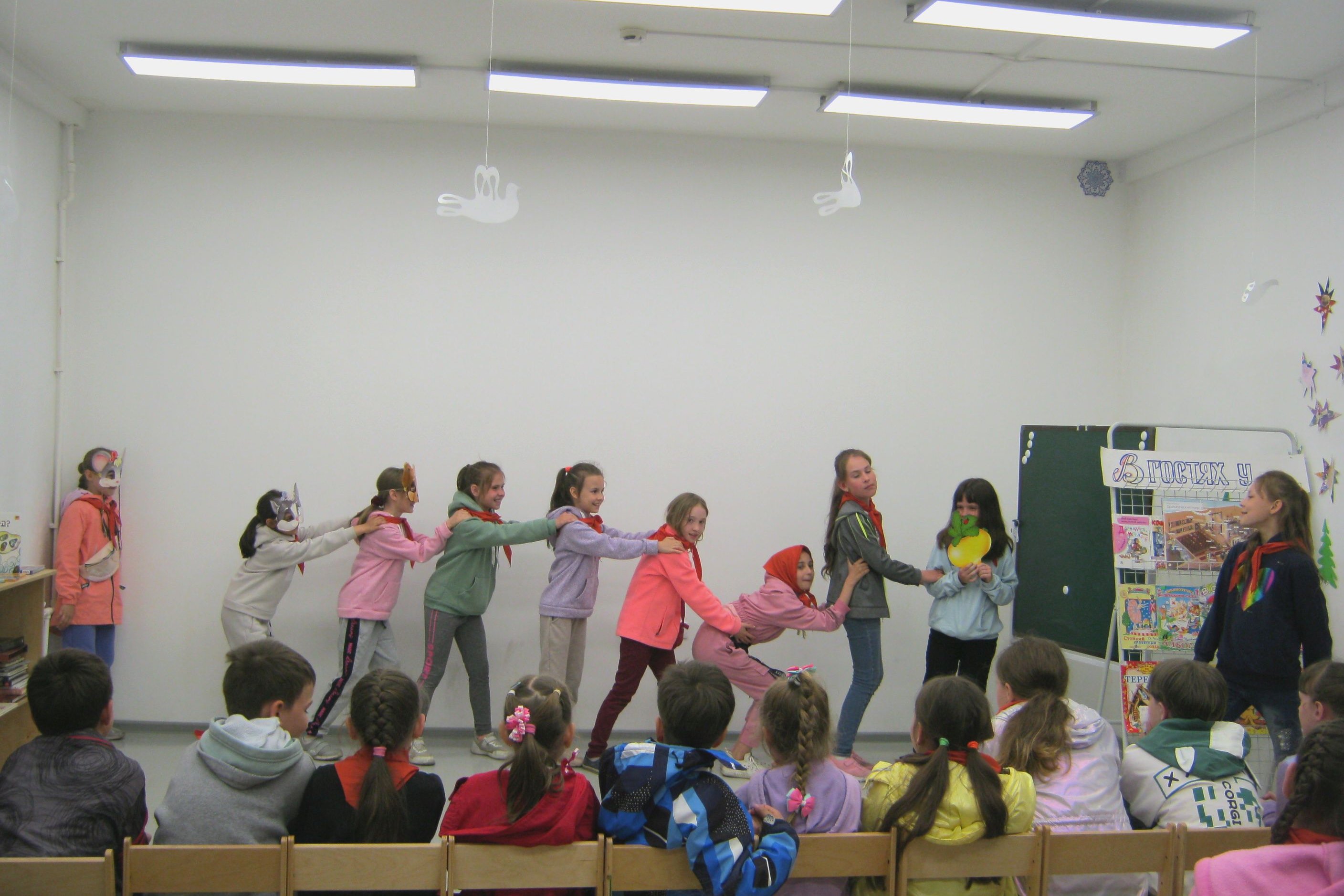 На этой неделе дети из Центра развития творчества детства и юношества посетили театральный урок в библиотеке №8. Ребята знакомились с тем, как все устроено в драматическом театре, какие бывают профессии, помимо актеров и что такое сказка-пьеса. После рассказа, дети вместе с педагогами сами показали мини-сценки по мотивам народных сказок: «Теремок», «Репка» и «Колобок». Было очень шумно и весело.